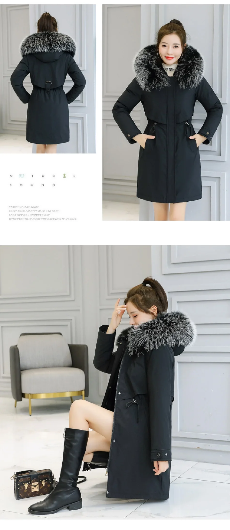 Пуховик женский зимний с меховым воротником, Корейская версия, своб...