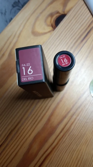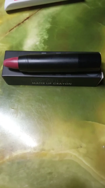 Пришла совершенно другая помада. Другой фирмы. Другого цвета. И не карандаш, как на фото, а тюбик. Не матовая, не водостойкая. С блестками, тёмная, бордовая.