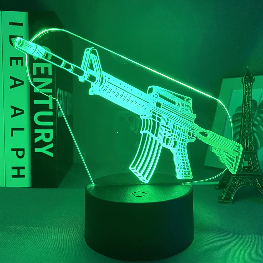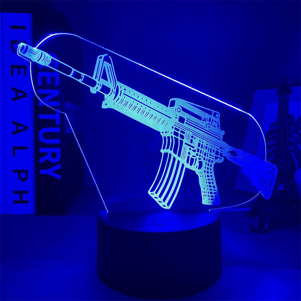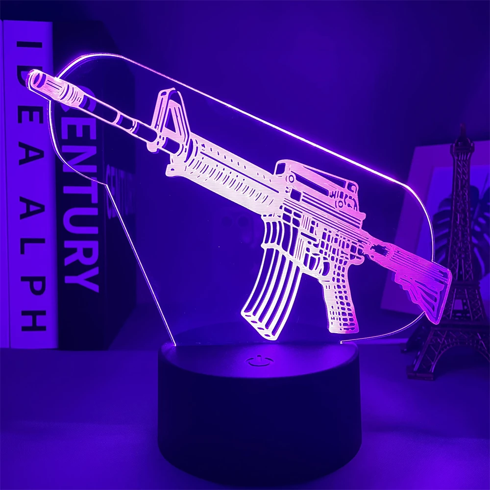 Ночной светильник игровое оружие M4, светодиодный ночсветильник с сенсорным датчиком, меняющий цвет, для кабинета, кровати, декор для детской комнаты, для мальчиков, подарок на день рождения, лампа