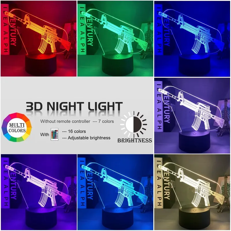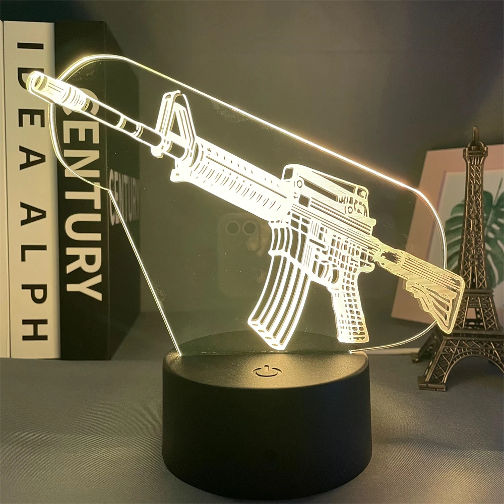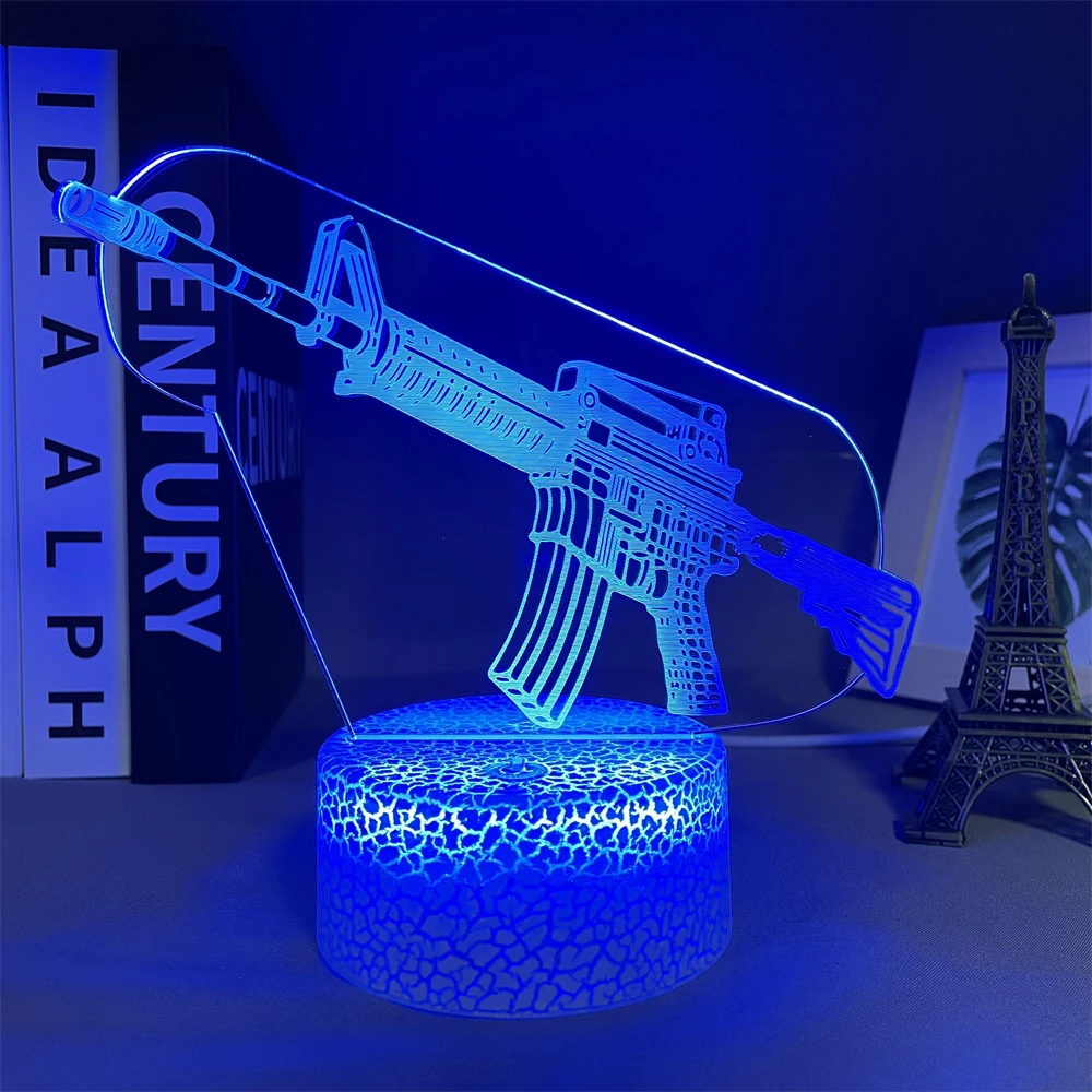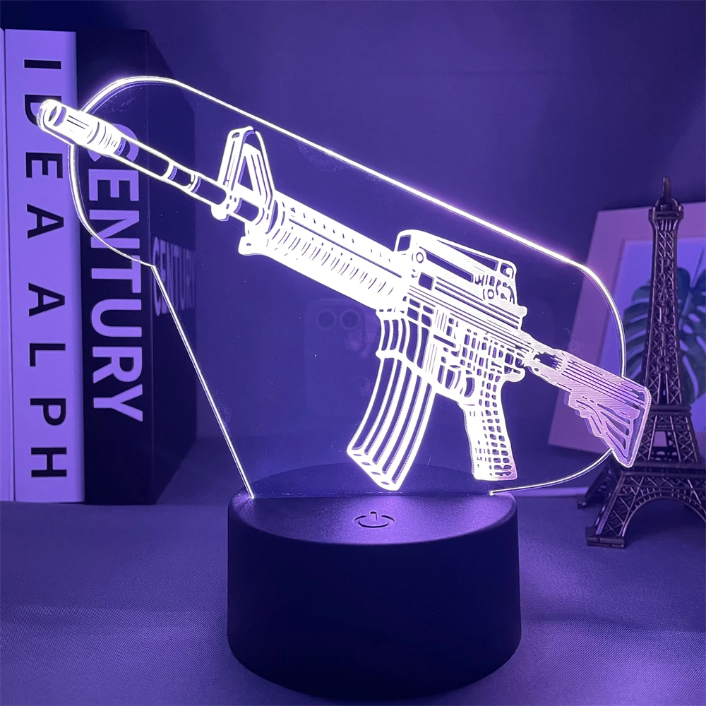 Ночной светильник игровое оружие M4, светодиодный ночсветильник с сенсорным датчиком, меняющий цвет, для кабинета, кровати, декор для детской комнаты, для мальчиков, подарок на день рождения, лампа