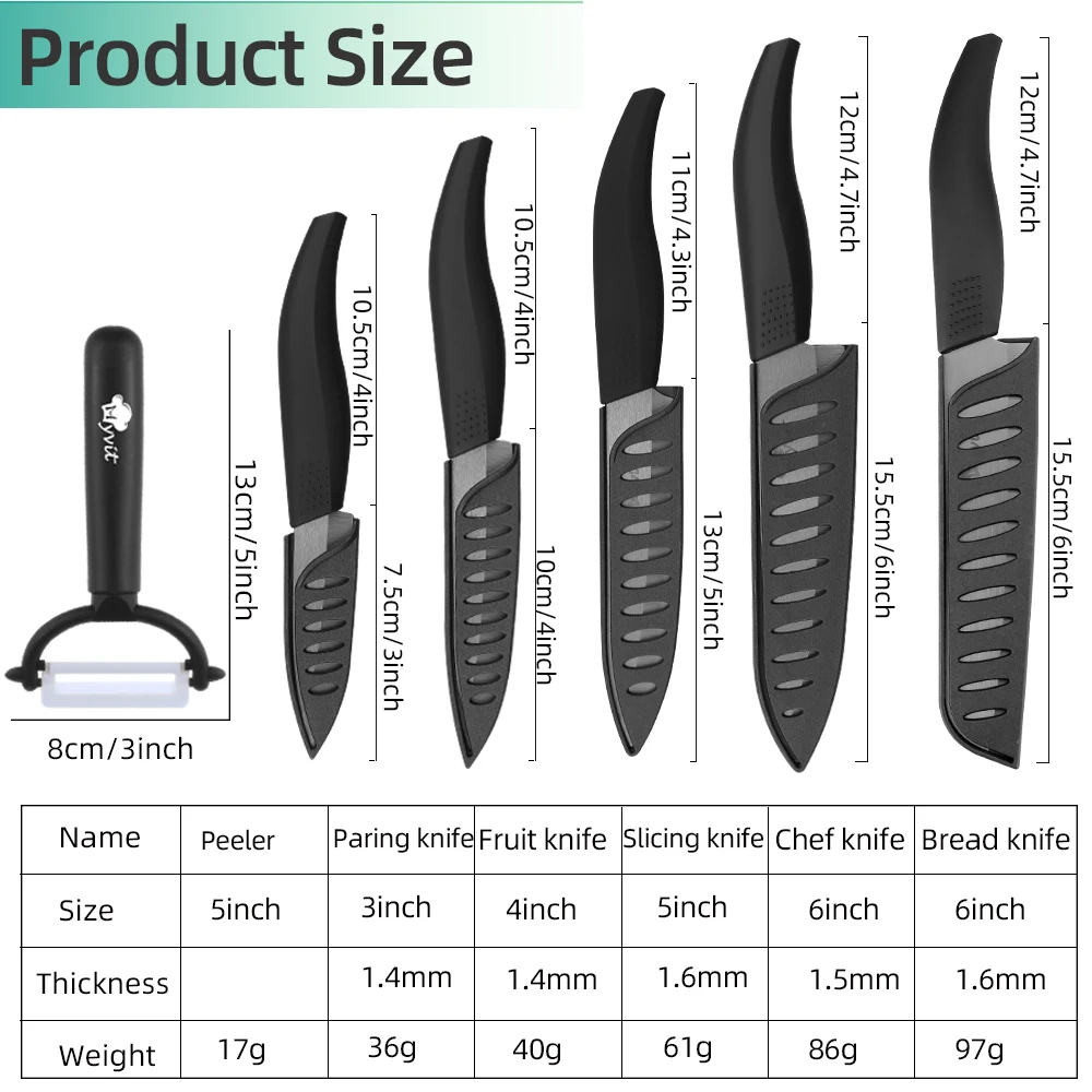 Керамические кухонные ножи, 3, 4, 5, 6, дюймов, набор ножей шеф-повара для приготовления пищи, овощечистка, лезвия из белого циркония, ручки разного цвета, высокое качество