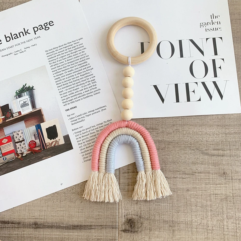 Детское кольцо для прорезывания зубов с радужной кисточкой и деревя...