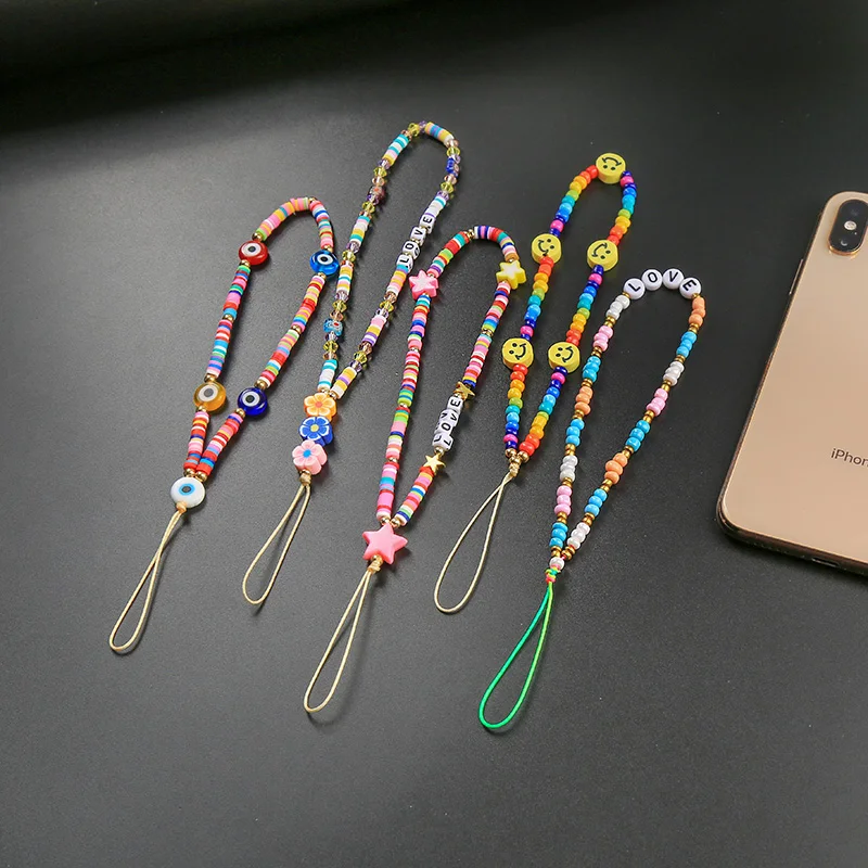 MOPAI многоцветный мобильный телефон, ремешок, улыбка, лицо, диск, бусины, жемчужная веревка, сотовый телефон, цепи для женщин, 2021, модные аксессуары