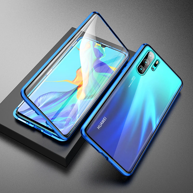 Двухсторонний стеклянный чехол для Huawei P30 Pro P40 P20 Honor 50 9X 8X 10 Lite P Smart Z Mate30, металлический магнитный адсорбционный чехол, 360