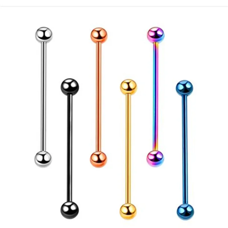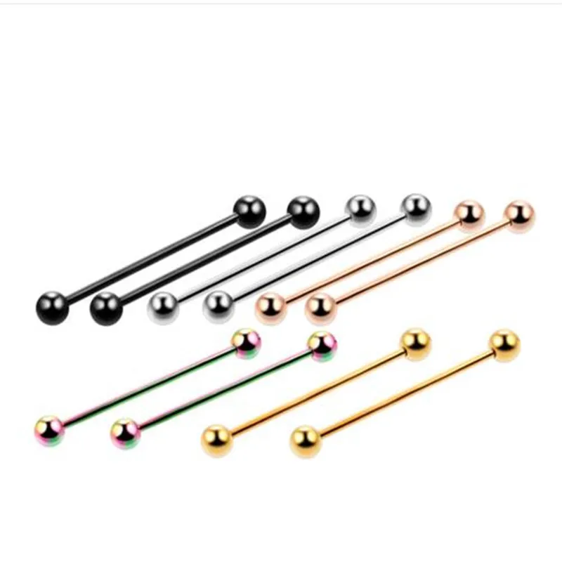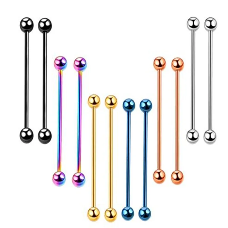 Комплект из 2 предметов Сталь пирсинг промышленный серьги пирсинг Промышленные Штанги Бар эшафот ушной хрящ Хеликс 14 г золота ювелирные изделия для тела