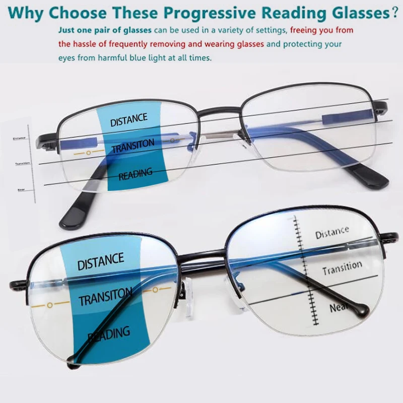 Прогрессивные многофокальные очки для чтения, мужские металлические...