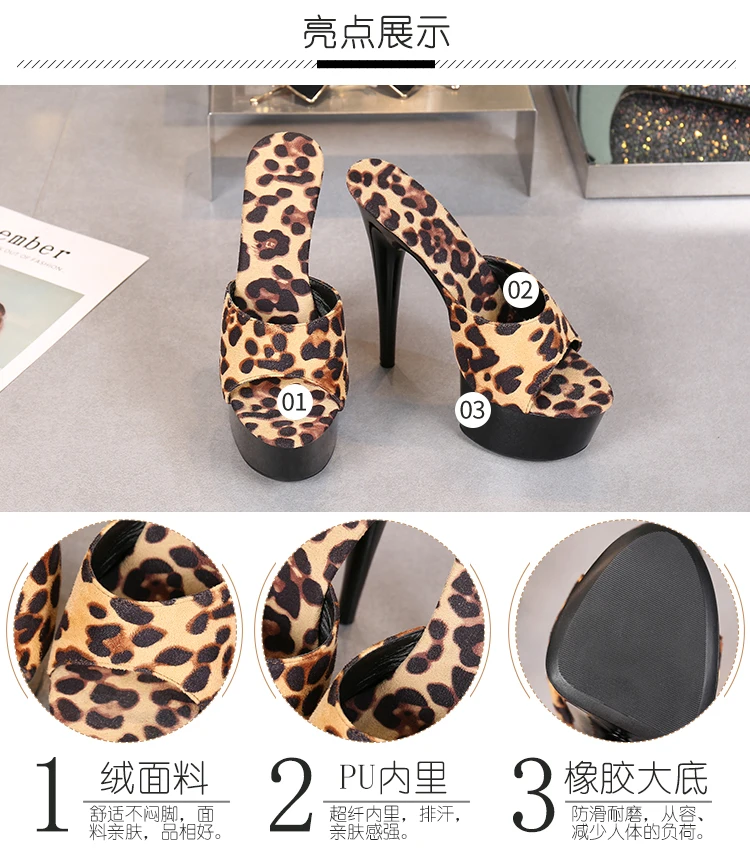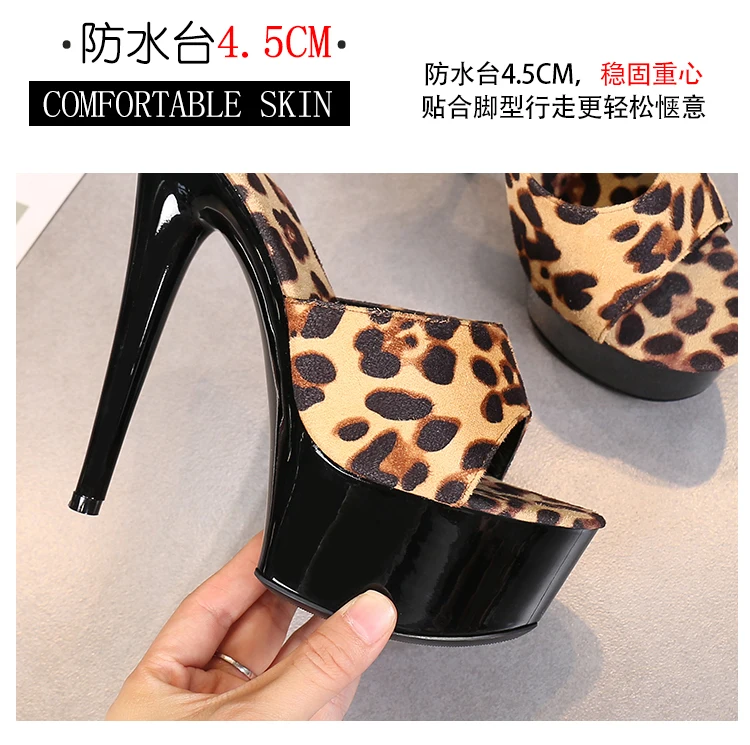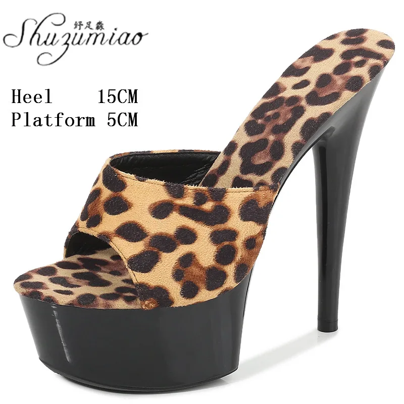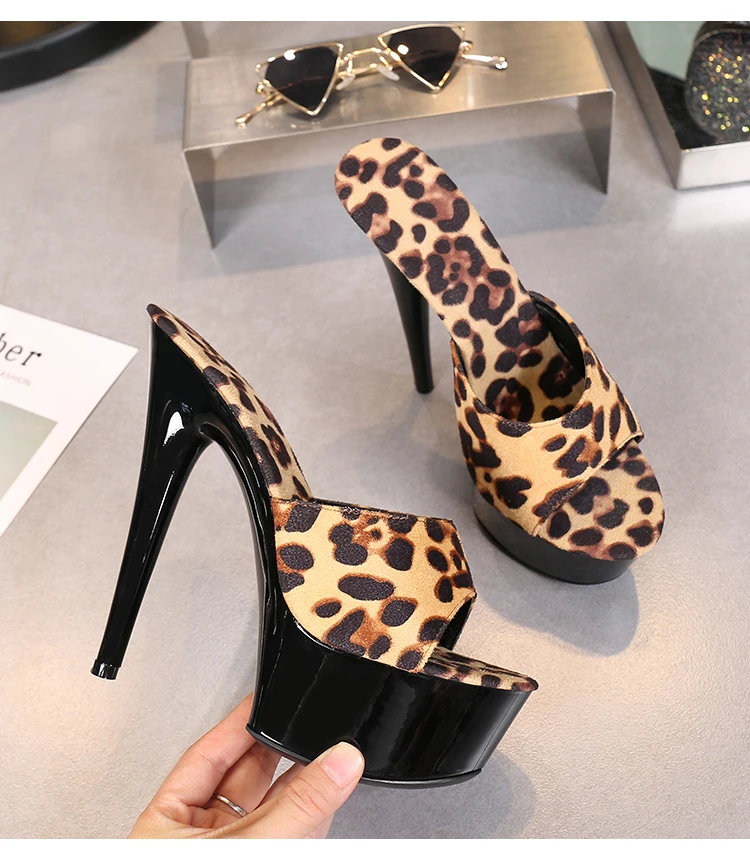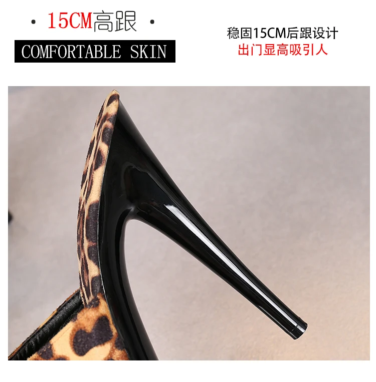 Женские туфли на очень высоком каблуке 15 см, с леопардовым принтом