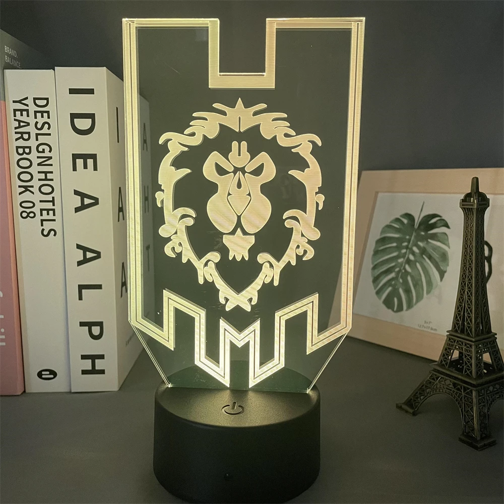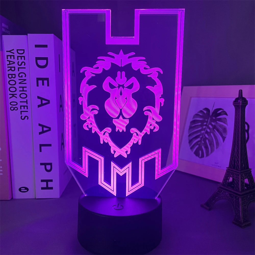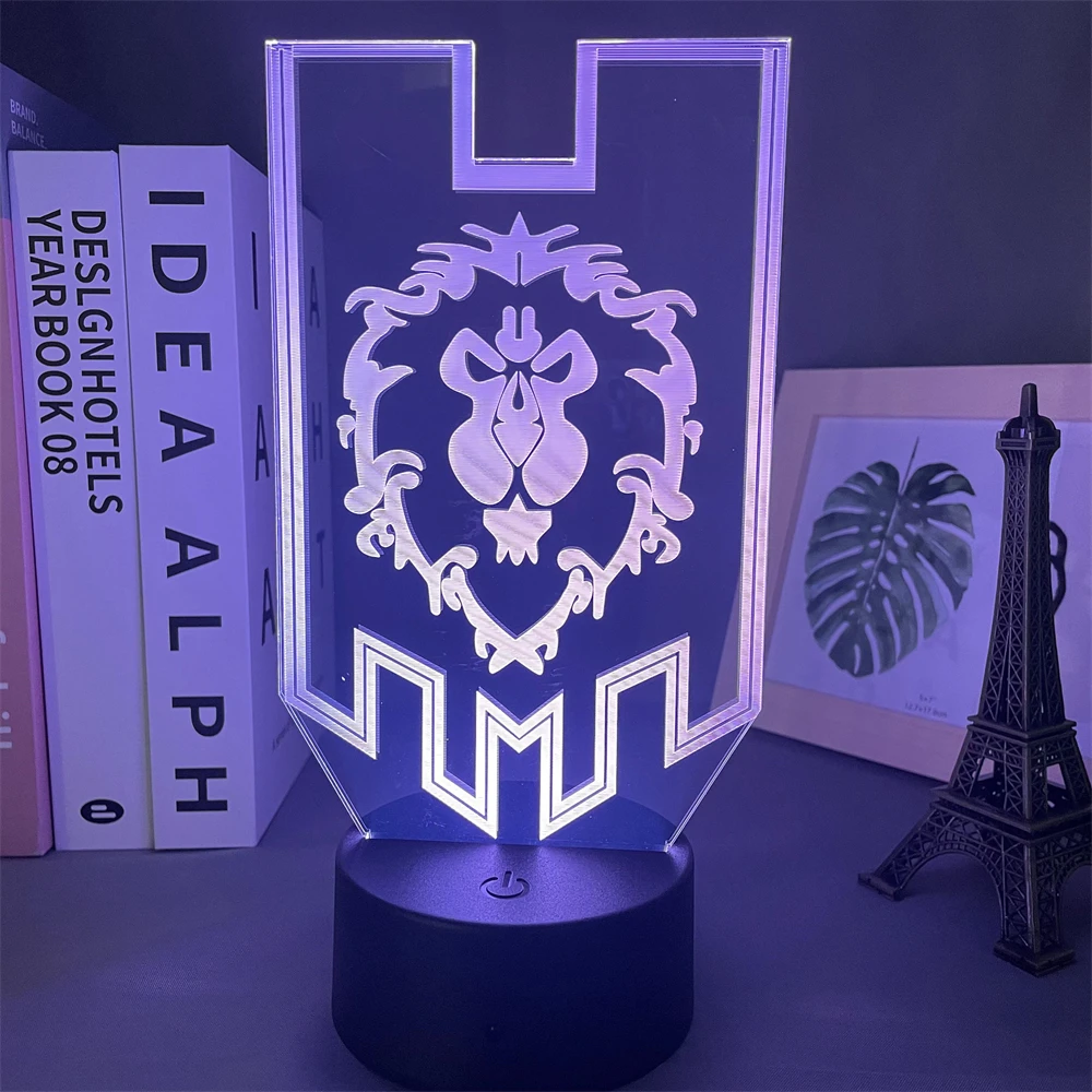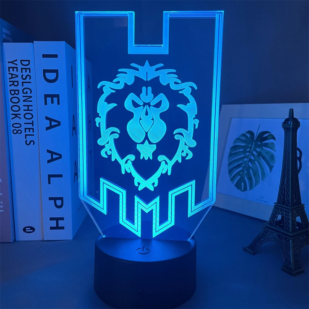 World of Warcraft Альянс флаг светодиодный ночной Светильник для игровой магазин номер Декор ночной Светильник уникальный подарок для геймеров Usb настольная лампа