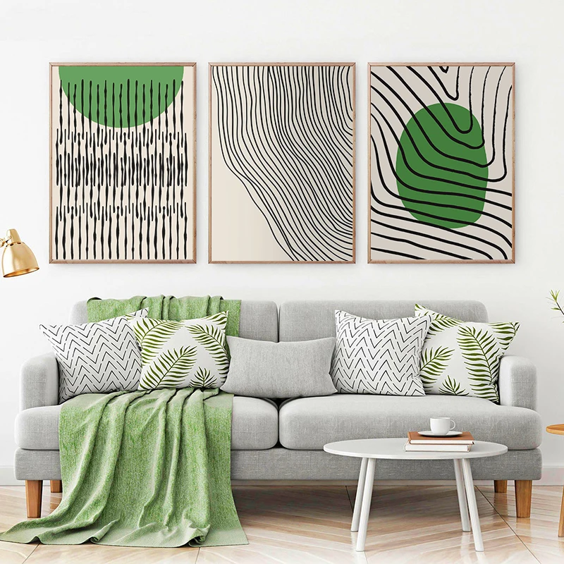 Зеленая Картина на холсте, геометрические абстрактные постеры и при...