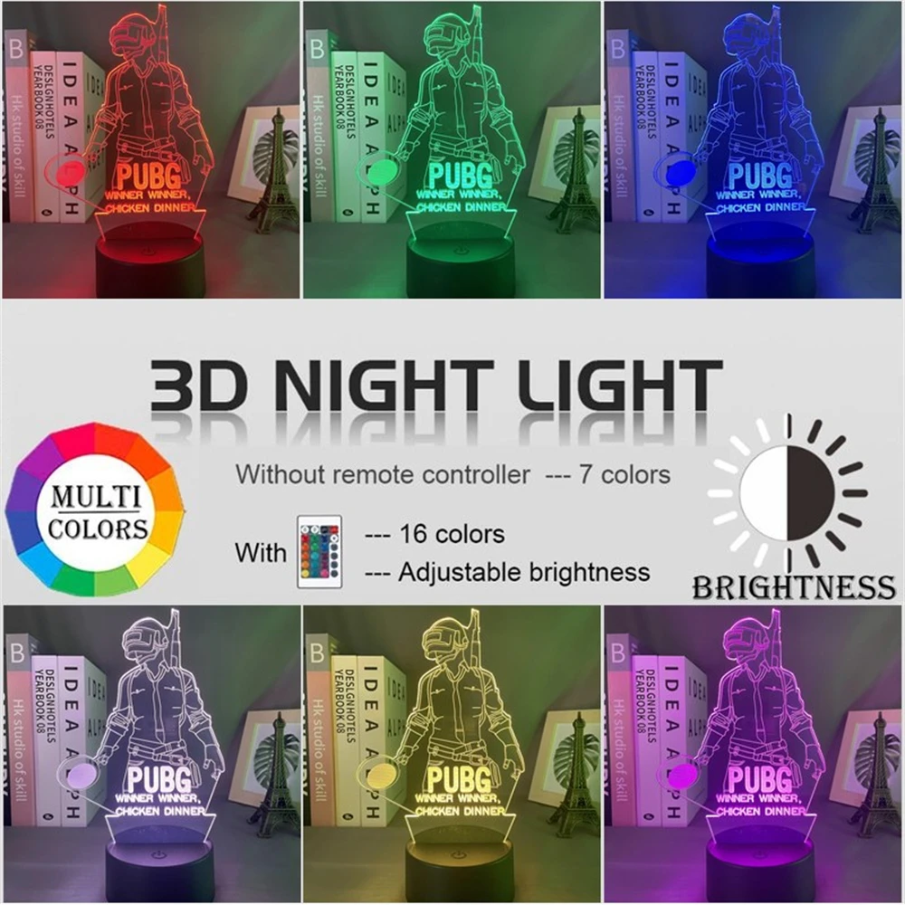 3d светодиодный ночсветильник PlayerUnknown's Battlegrounds, 16 цветов, меняющийся ночсветильник с дистанционным управлением, классное событие, приз, лампа PUBG
