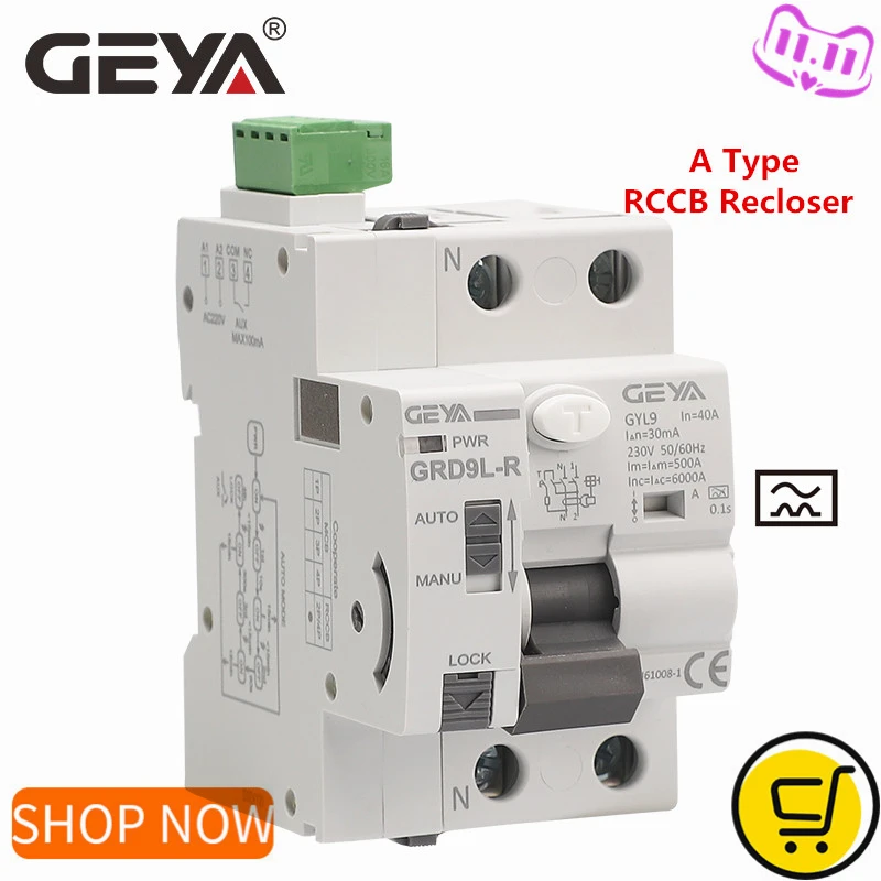 GEYA GRD9L-R Авто Recloser с типом RCCB RCD ELCB 40A 63A 30mA 100mA 300mA предохранитель безопасности