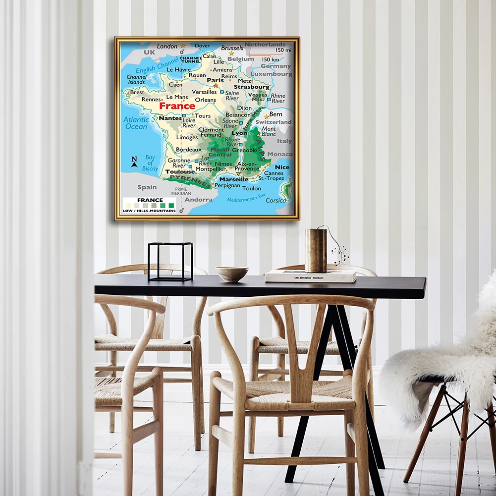90*90 см политическая карта Франции из нетканого материала, холст д...