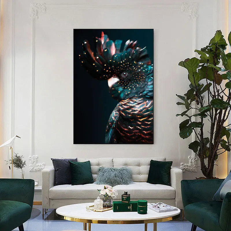 Плакат с животными в скандинавском стиле какаду, черная, темно-синя...