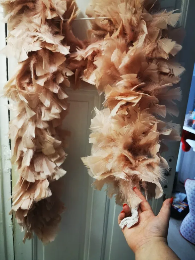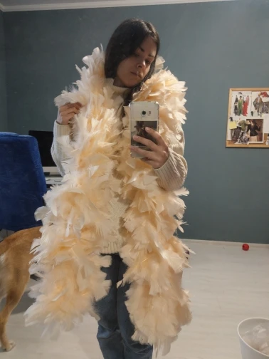 Перед использованием, пожалуйста, используйте фен для выдувания перьев. Он будет выглядеть более пушистым и красивым, так как все наши перья натуральные и ручной работы, могут быть капли перьев, но это не повлияет на ваше использование. Все цвета темных перьев boa не очень яркие. Держите подальше от светлых цветов ..