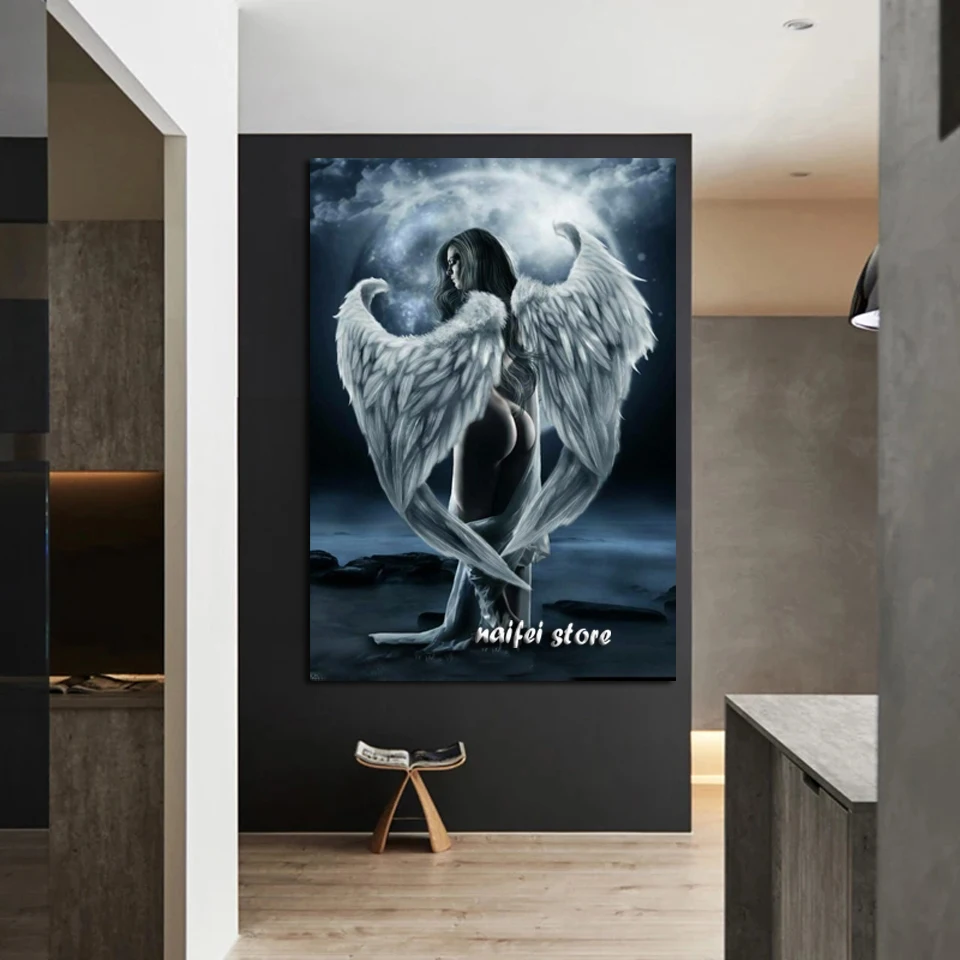 5D Diy Алмазная картина сексуальная женщина полный квадратный Круглый Алмаз "Ангел и крылья" вышивка крестиком Стразы для домашнего декора