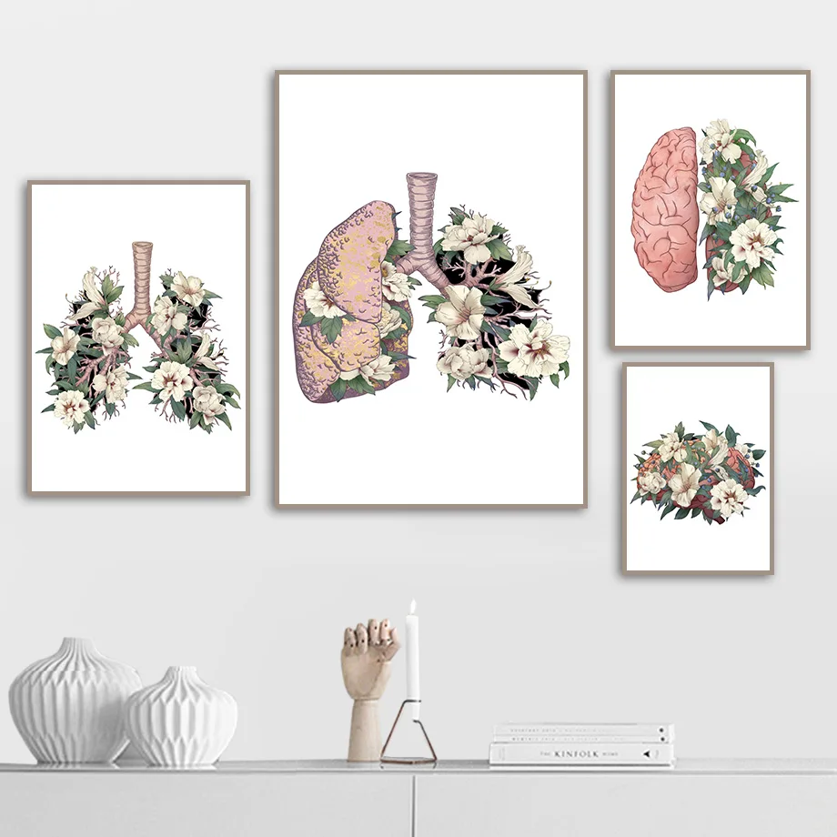 Настенная Картина на холсте в скандинавском стиле великолепные легкие, плакаты с сердцем и человеческими органы и принтами украшение для врачей и офиса
