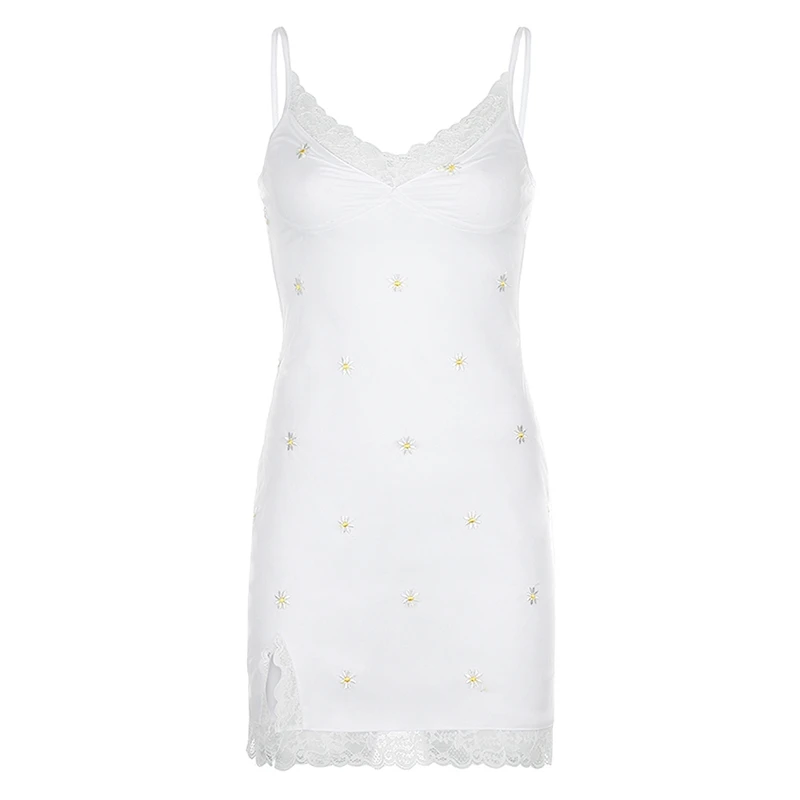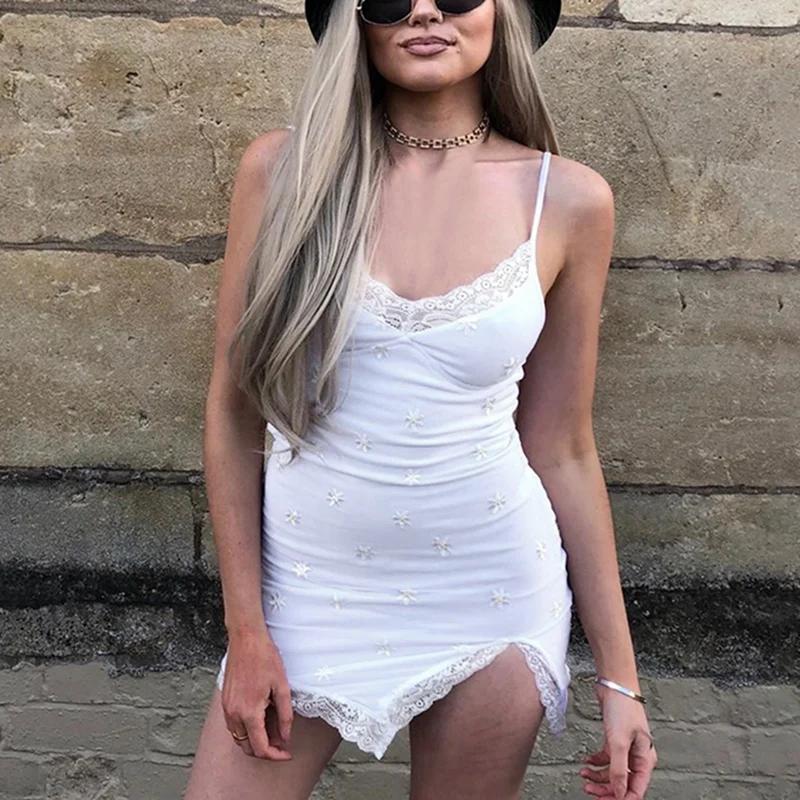 Женское Кружевное облегающее платье с вышивкой, Белое и черное короткое платье без рукавов с разрезом, 2 шт.