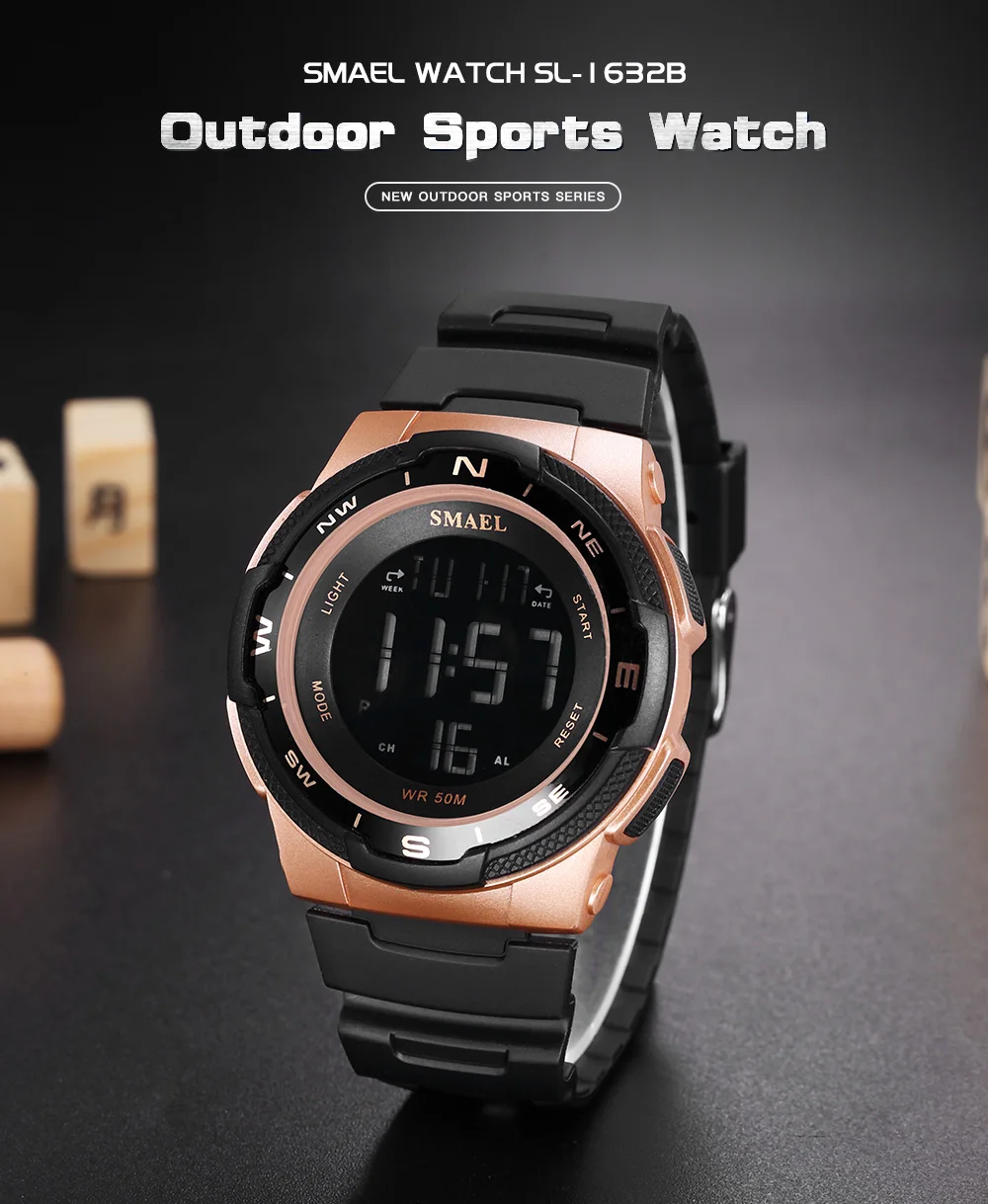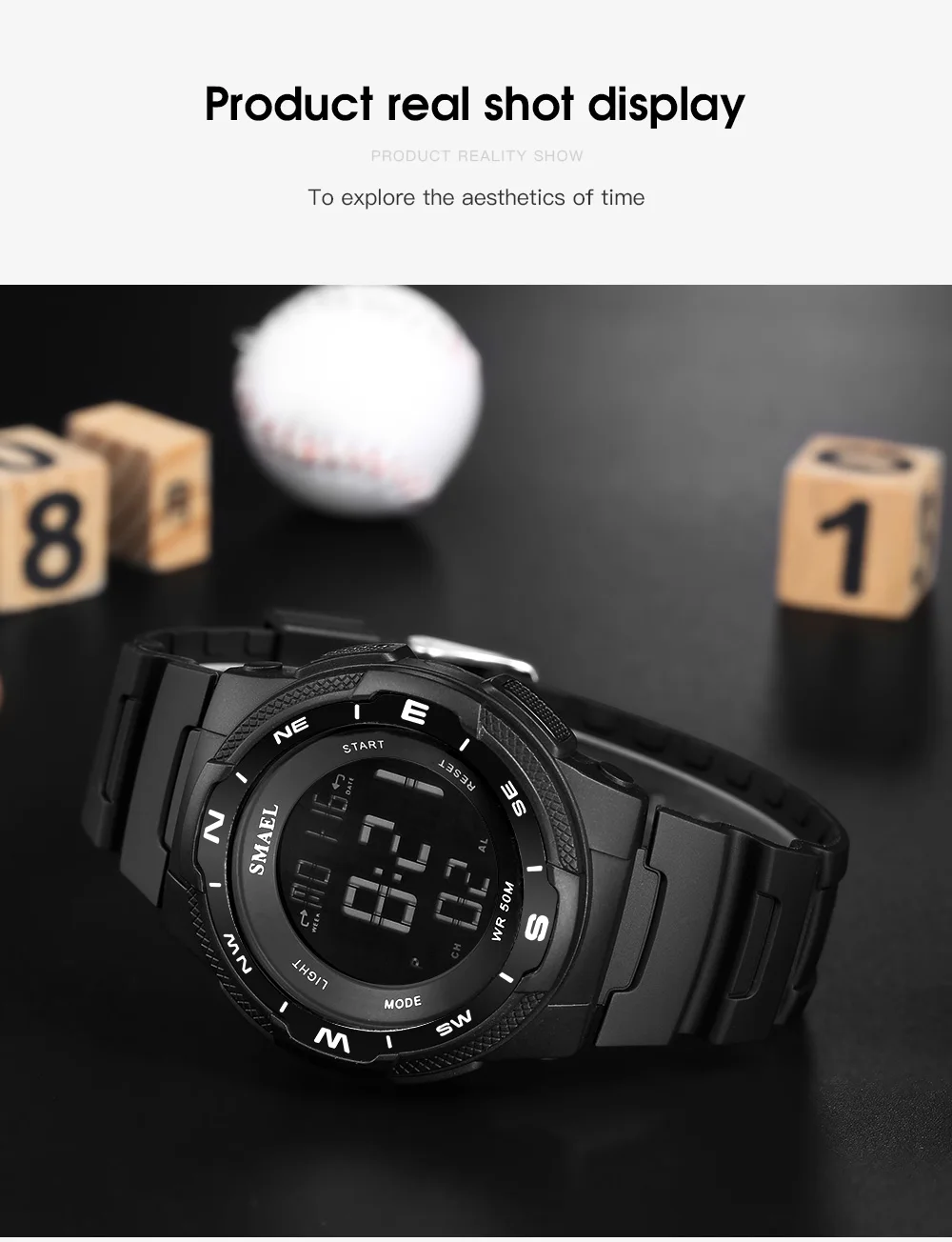 Для мужчин электронные часы Спорт на открытом воздухе Водонепроницаемый автоматическое обновление Дата светодиодный светящийся цифровой циферблат секундомер, таймер часы-будильник