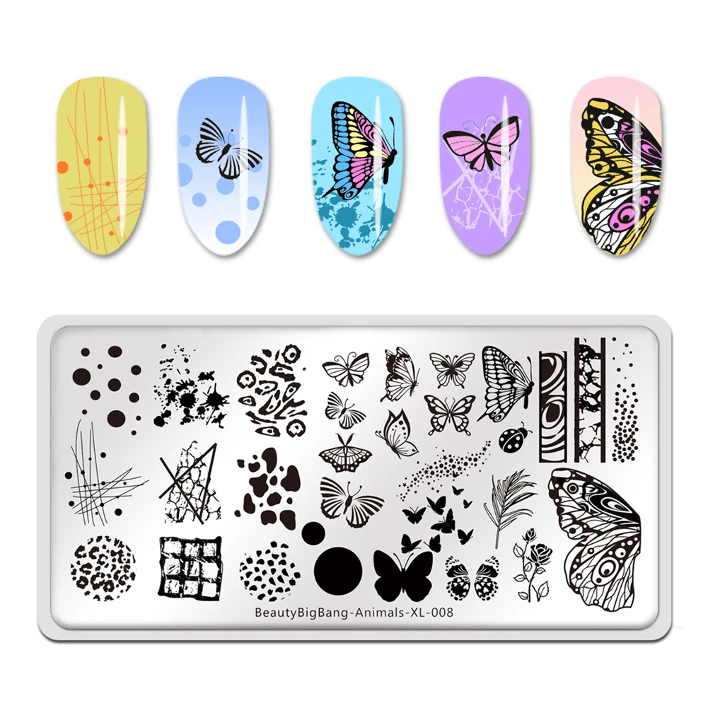 Beautybigbang пластина для штамповки ногтей геометрические XL-003 полосатые линии узор маникюр Дизайн ногтей шаблон изображения маникюрные трафареты инструмент