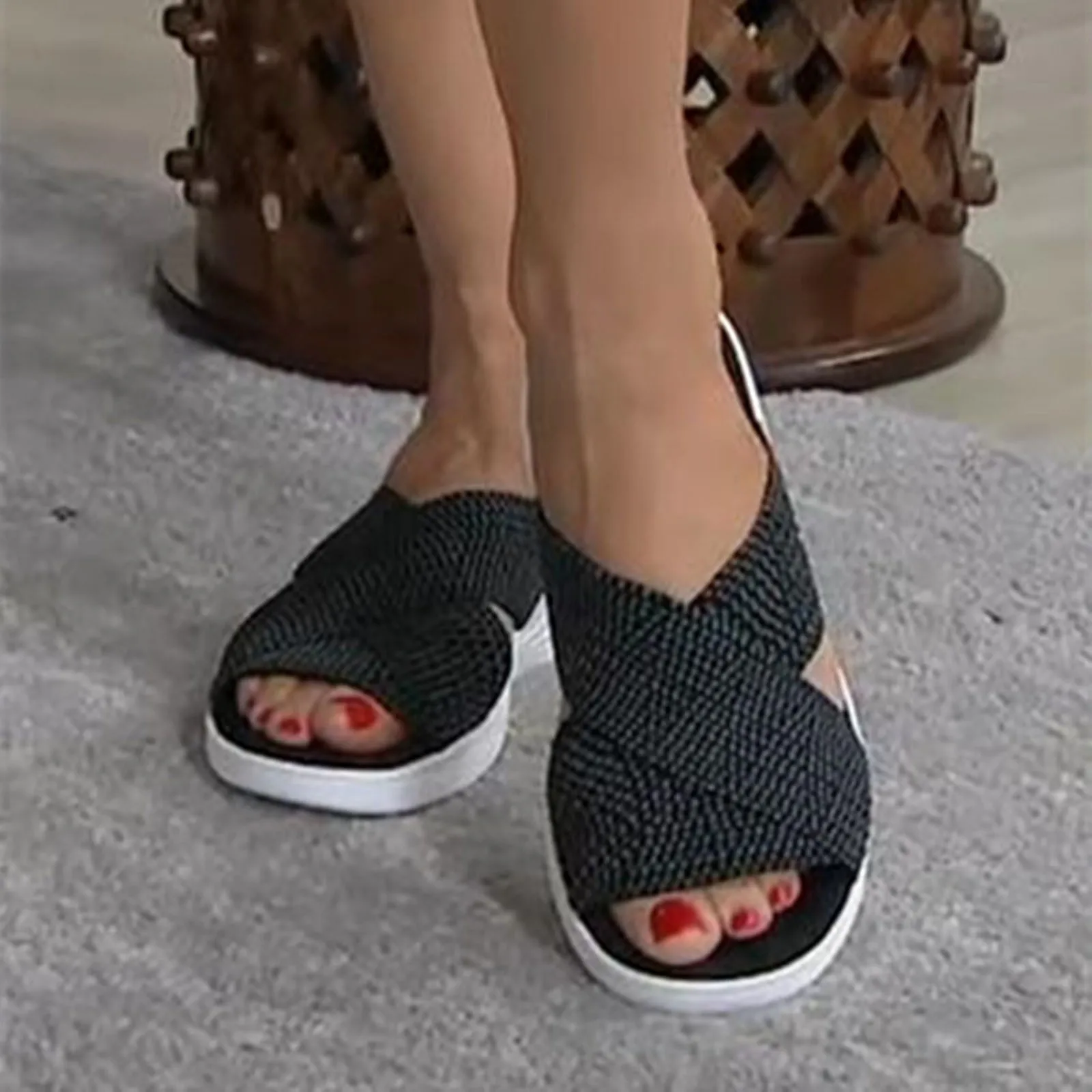 Женские эластичные сандалии с перекрестными ремешками; Летние пляжные шлепанцы на танкетке