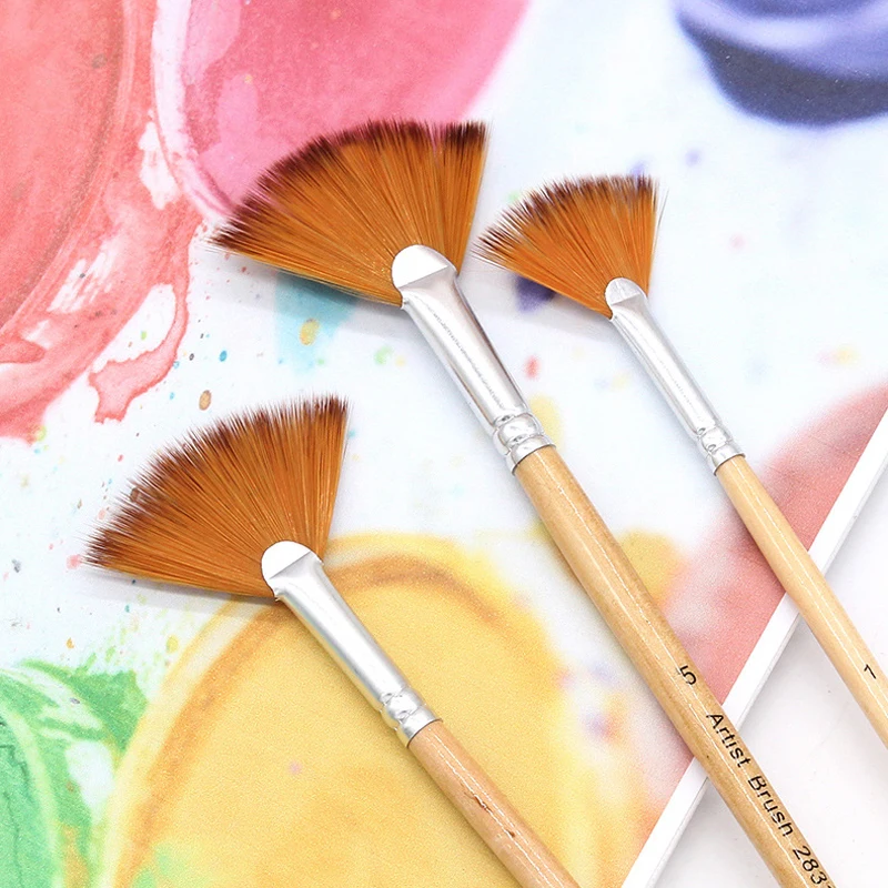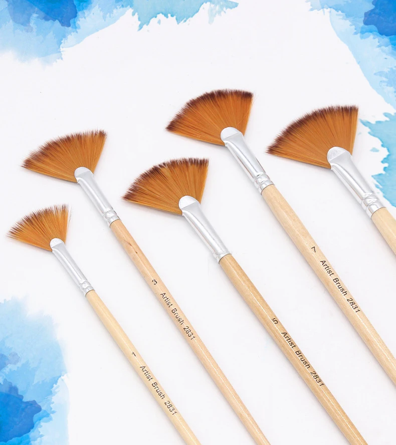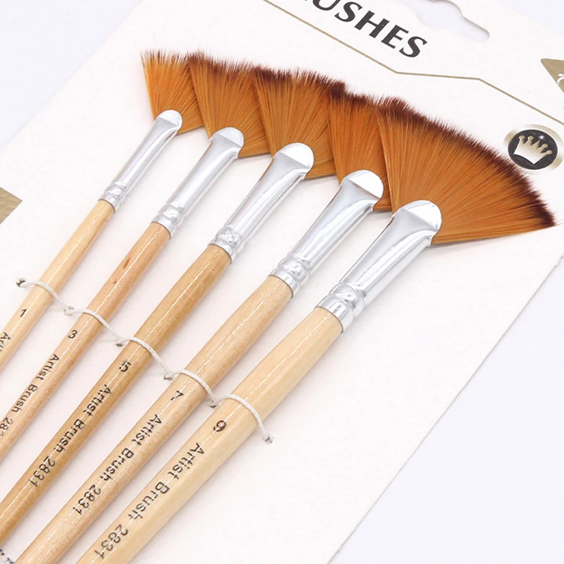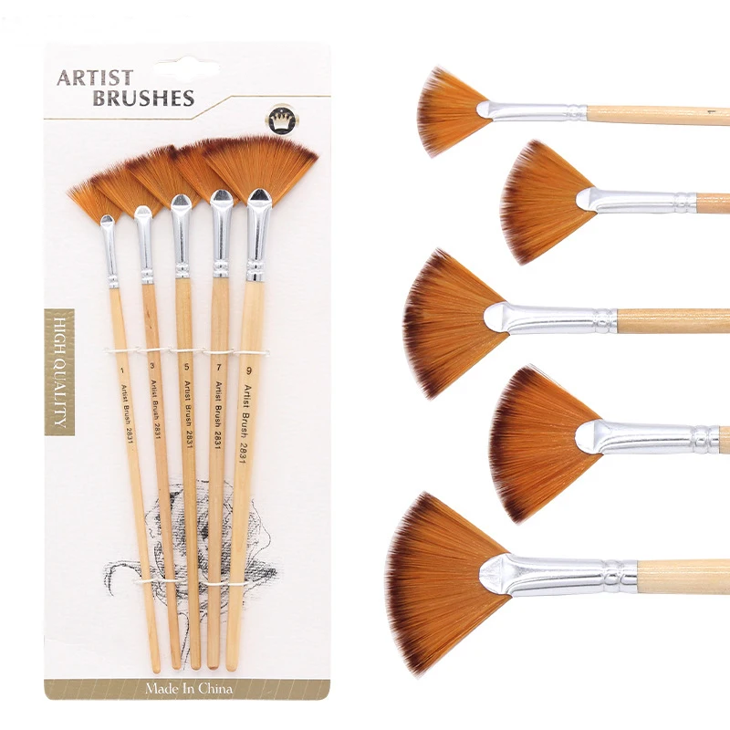 5 шт.компл. креативная ручка для рисования гуашью Fan Shap, высококачественные нейлоновые волосы, деревянные наборы кистей для рисования, искусственные волосы для студентов