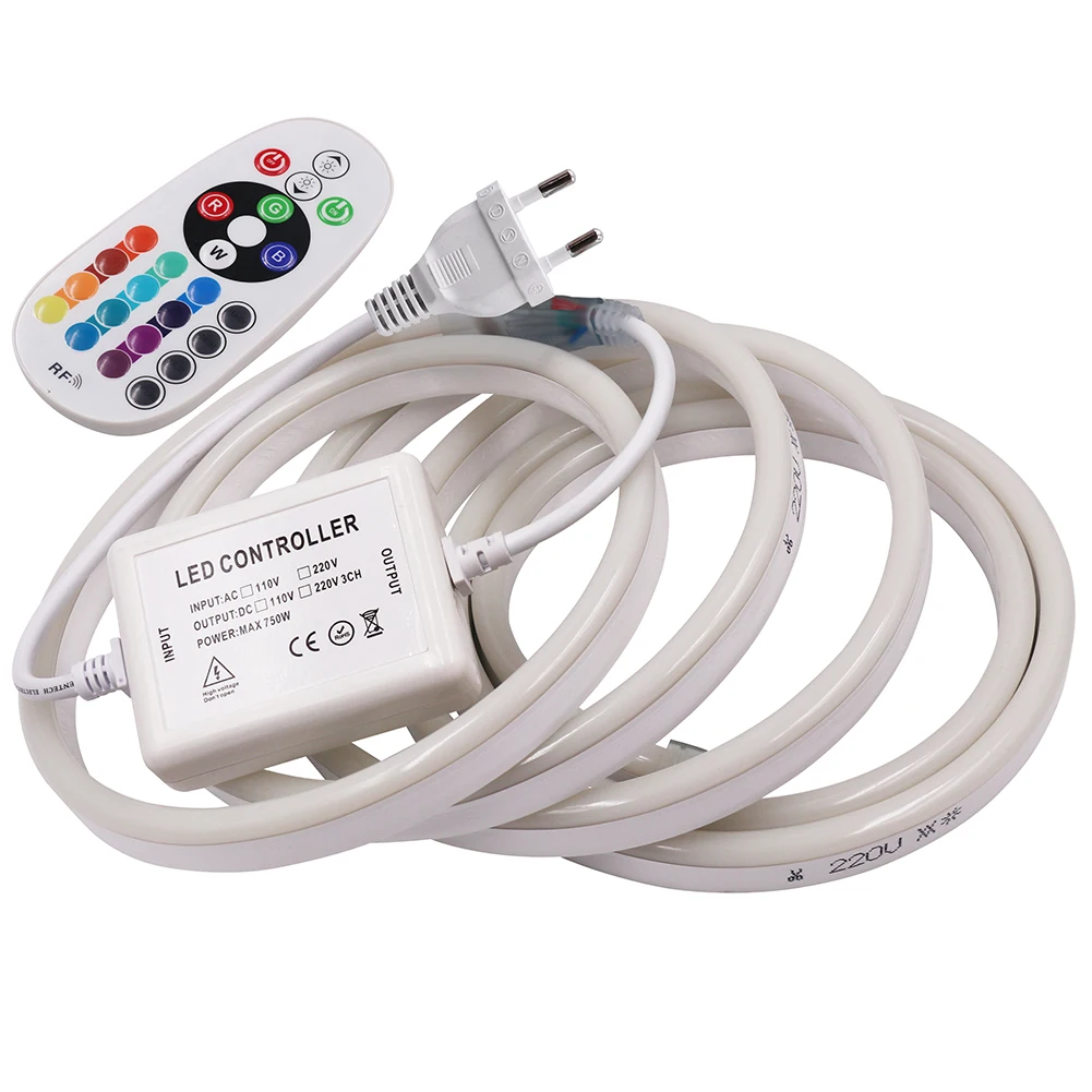 Неоновая RGB лента 220 В переменного тока, водонепроницаемая неоновая лента IP68, 5050, 2835 неоновая вывеска, гибкая неоновая веревка с пультом