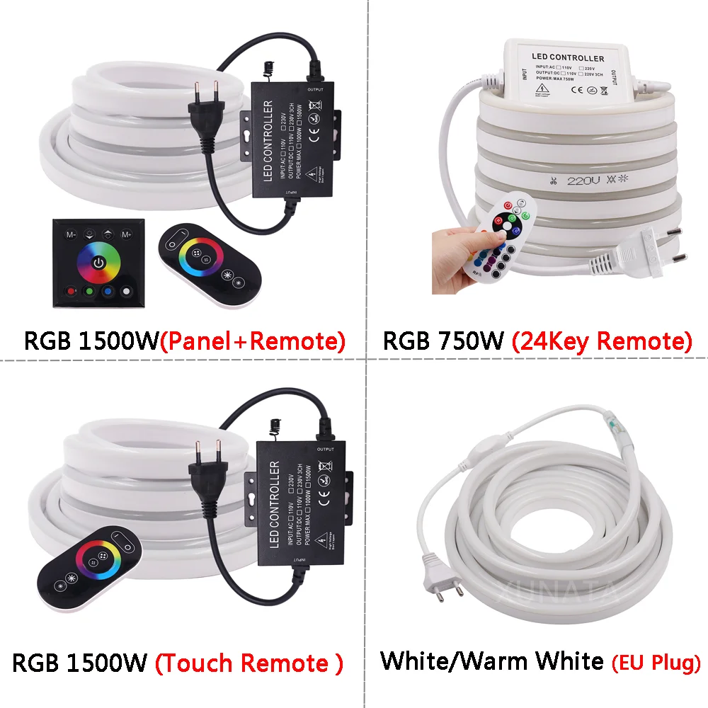 Тип: Гибкий неоновый светильникВход напряжение: AC220V -240V штепсельная вилка европейского стандартаСветодиодный чип: EpistarТип светодиодный: SMD5050 (RGB) /SMD2835 (белый/теплый белый)Светодиодный потолочный светильник бусины Кол-во: разноцветный "Красный-зелёный-желтый (80 светодиодный s/m SMD 5050) , белый/теплый белый свет (120 светодиодный s/m SMD 2835). Супер яркостьВодонепроницаемость: водонепроницаемый IP68Размер: 9-10 мм x18-20mm (RGB) , 8 мм x 16 мм (белый/теплый белый)Цвет: RGB/белый/теплый белыйМожно резать каждый метр (приблизительно 40 дюймов) (при маркировке ножниц)