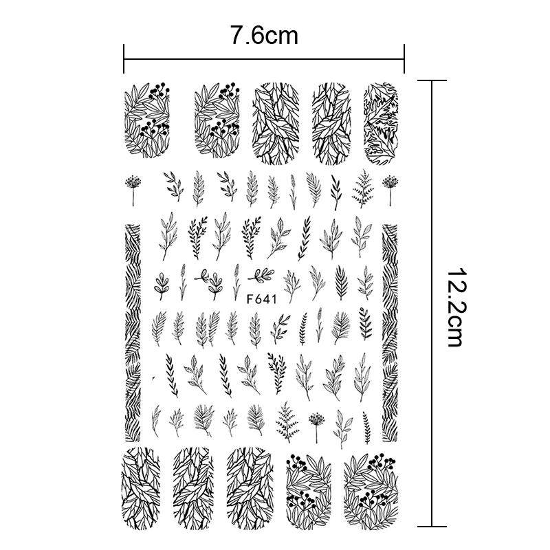 3d-наклейка для ногтей, с изображением сердца, Листьев, черно-белая...