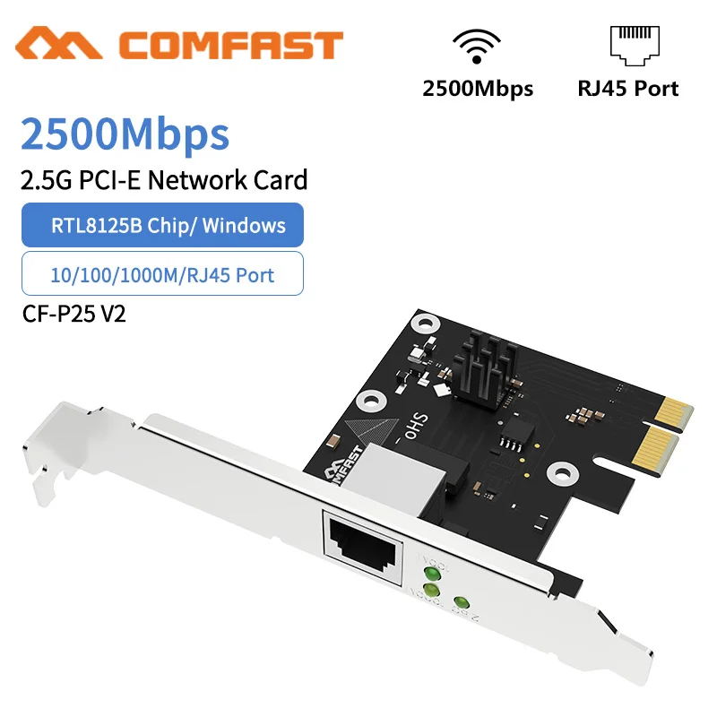 Сетевая карта PCIE для игр, 2500 Мбитс, RTL8125B, 100 Мбитс