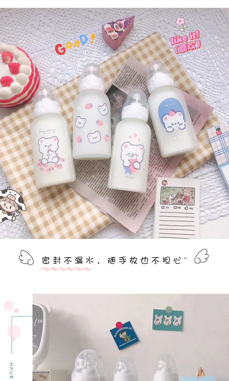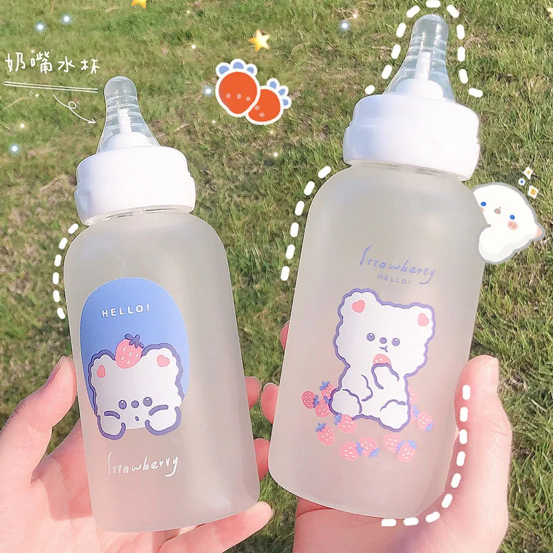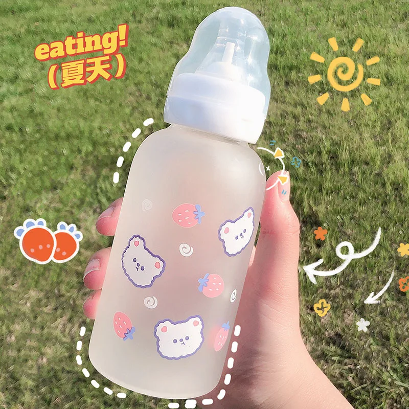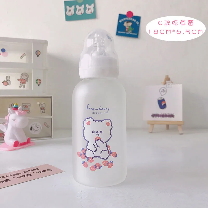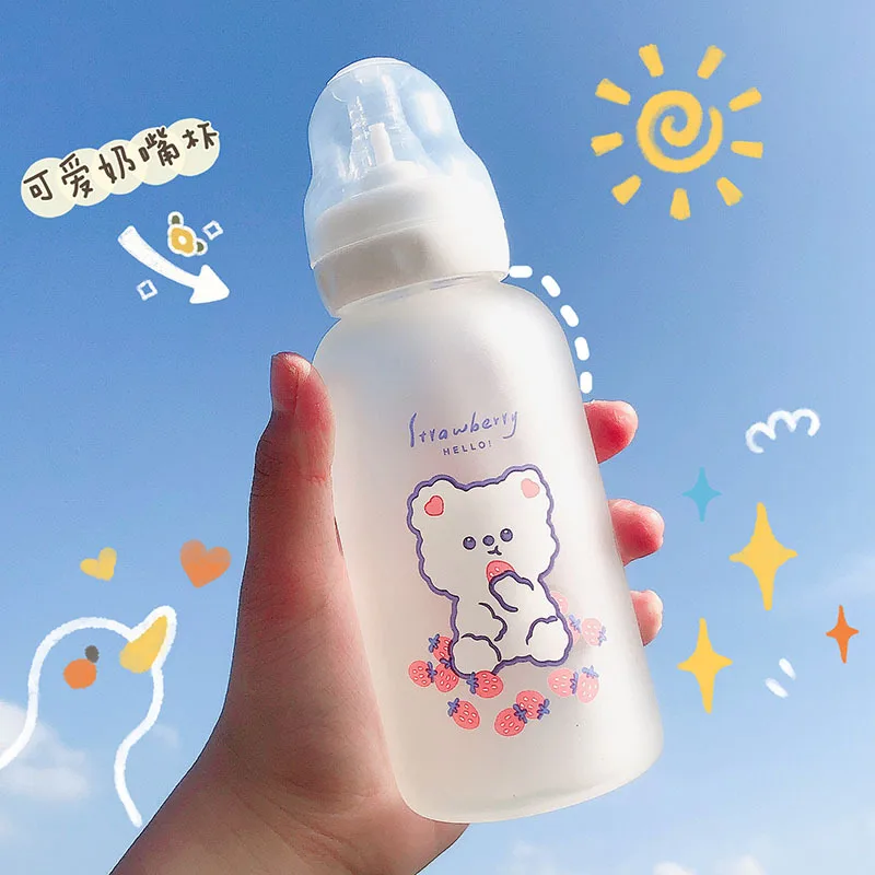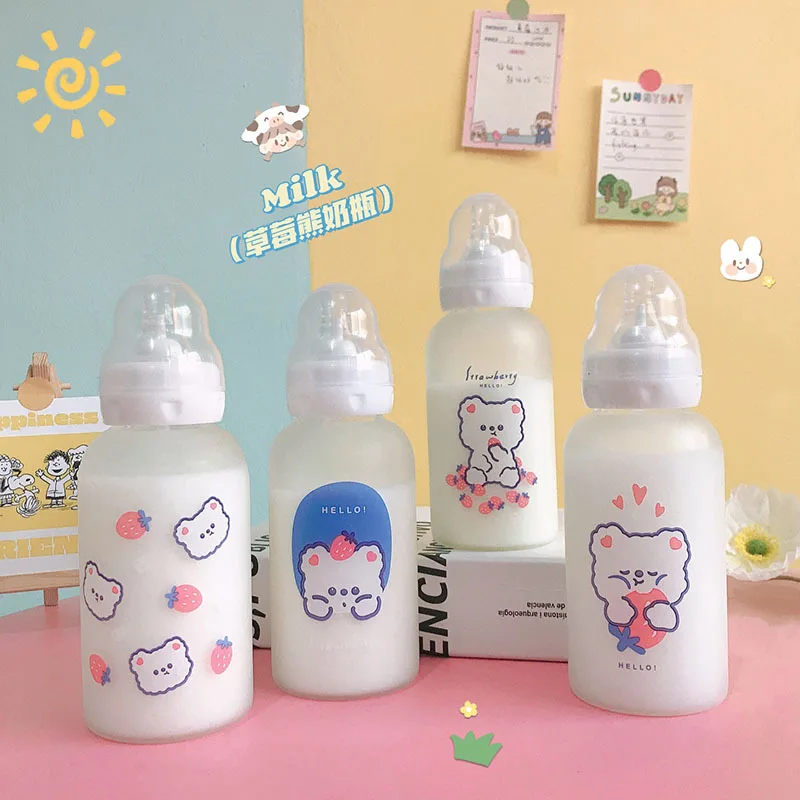 INS стиль Мультяшные бусины для малышей с принтом в виде бутылки с молоком, ниппель бутылки стеклянный стакан для воды большая емкость ударостойкий дроссель доказательство соломенная чашка