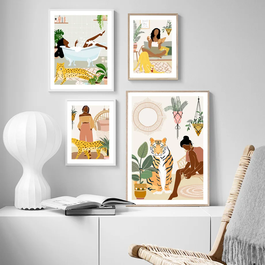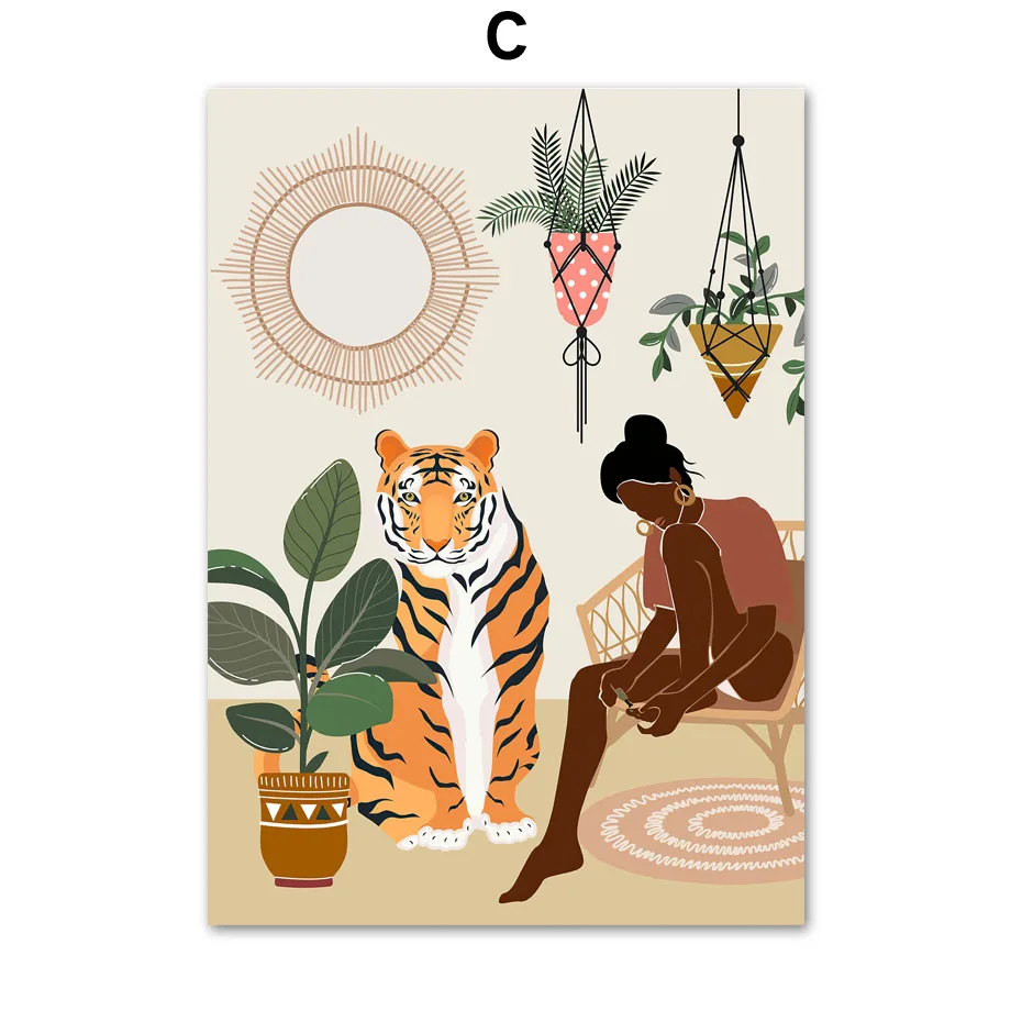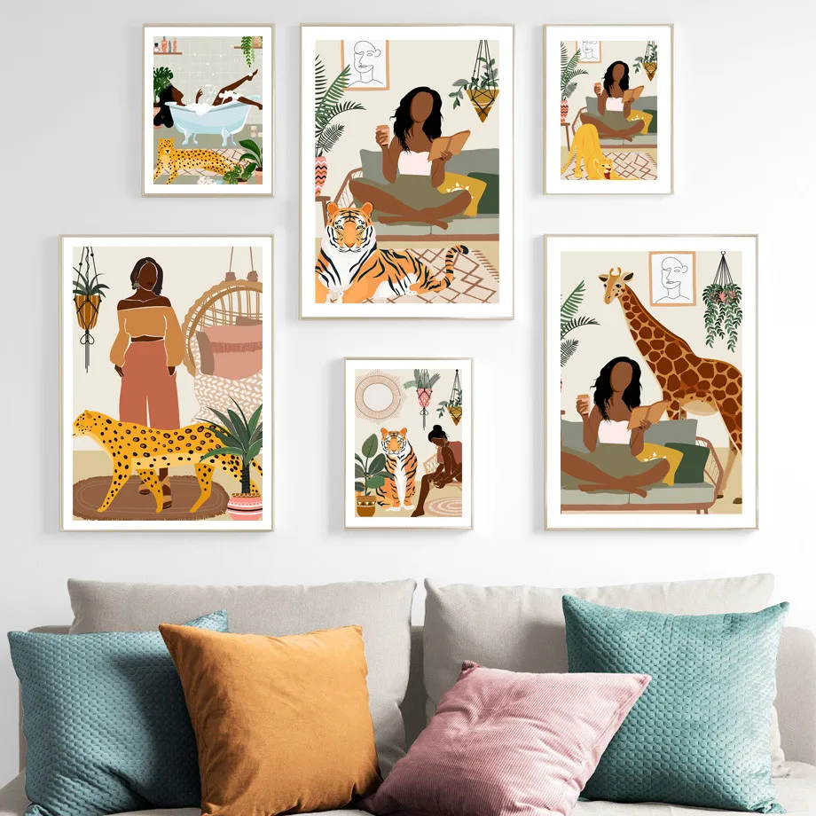 5D алмазная живопись в стиле бохо, абстрактная девушка, жираф, тигр, леопард, Лев, настенная живопись, настенный постер в скандинавском стиле для гостиной