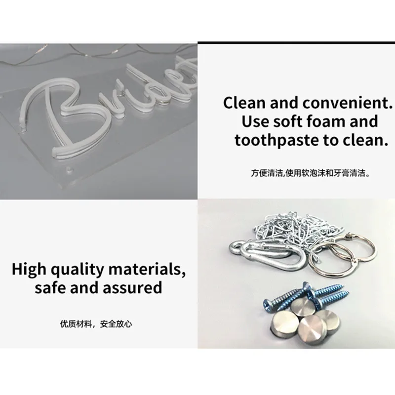 1. Мы можем сделать все неоновые знаки, которые вам нужны. Просто предоставьте содержание, цвет, размер или отправьте нам чертежи вашего дизайна и детальные требования 2. Настенный монтаж, Установка Подвески, простой и удобный Используйте провод, чтобы повесить сверху знак или прикрутить к стене 3. Стандартная вилка для любой страны Есть штепсельная вилка стандарта США, штепсельная вилка стандарта Великобритании, штепсельная вилка стандарта Австралии и штепсельная вилка европейского стандарта 4. Один год гарантии на светодиодную неоновую вывеску Наша светодиодная неоновая вывеска сделана из лучшего качества led neon flex, поэтому мы можем обещать, что наружная гарантия составляет 6 месяцев, гарантия в помещении составляет 1 год. В течение гарантийного срока, если возникнут какие-либо проблемы с качеством, мы отремонтируем или даже заменим для вас бесплатно. 5. Заводская цена Потому что мы производим в Фошань, поэтому, когда мы обеспечиваем лучшее качество продукции для вас, мы также можем дать вам самую разумную цену. 6. Короткое производство и время доставки У нас есть более 100 рабочих фабрик, и долгосрочные отношения с транспортной компанией. Поэтому мы можем обещать вам короткое производство и время доставки. Обычно это занимает 4-5 рабочих дней для производства, экспресс-доставка около 15-90 дней, коммерческий Экспресс-Доставка 5-7 дней