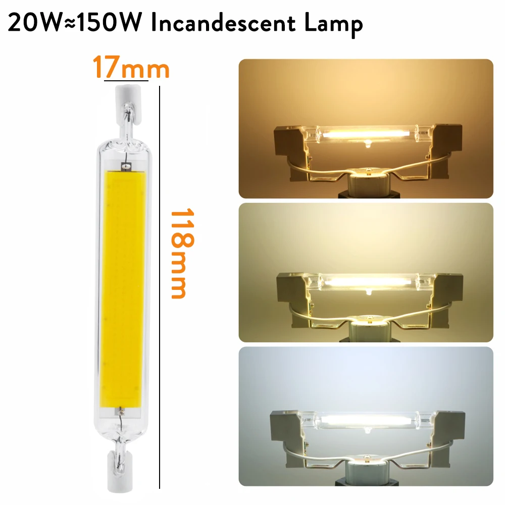 Диммируемые Светодиодные лампы COB R7S стеклянная трубка прожектор 118 мм 20 Вт Холодныйтеплыйестественный белый 220 В 110 В J-образный заменить галогенную лампу