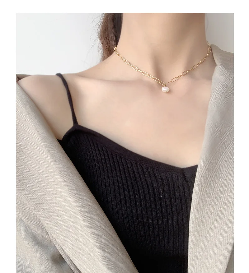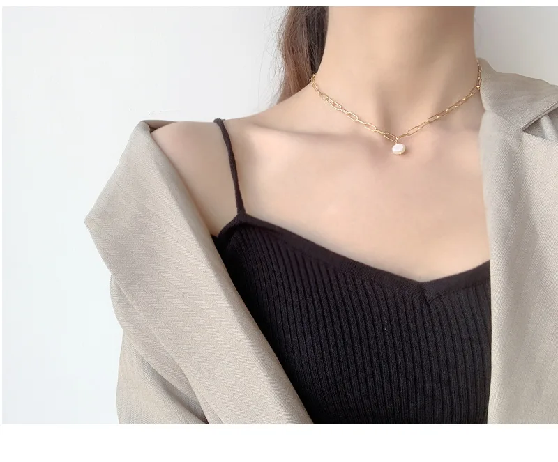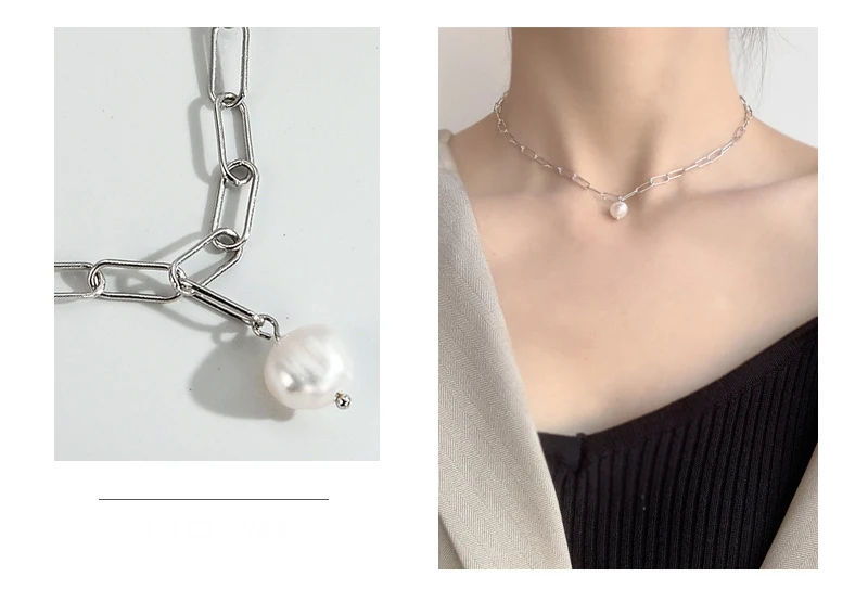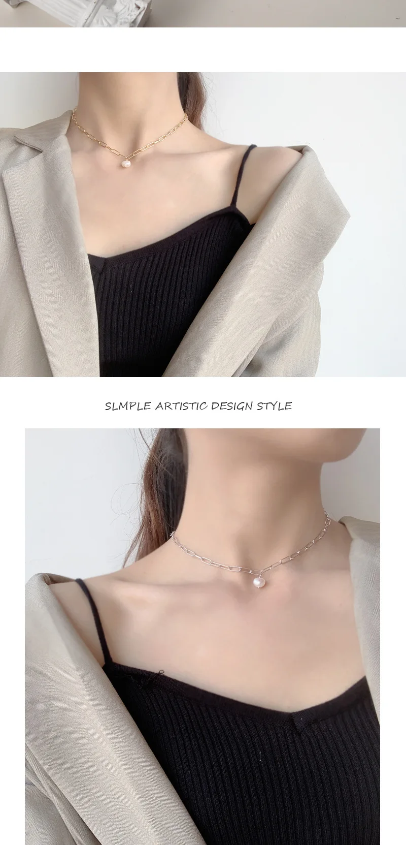 F.I.N.S простой ручной работы пресноводного S925 серебряное ожерелье кулон для женщин, короткая цепочка на ключицы звено цепи ожерелье ювелирные изделия