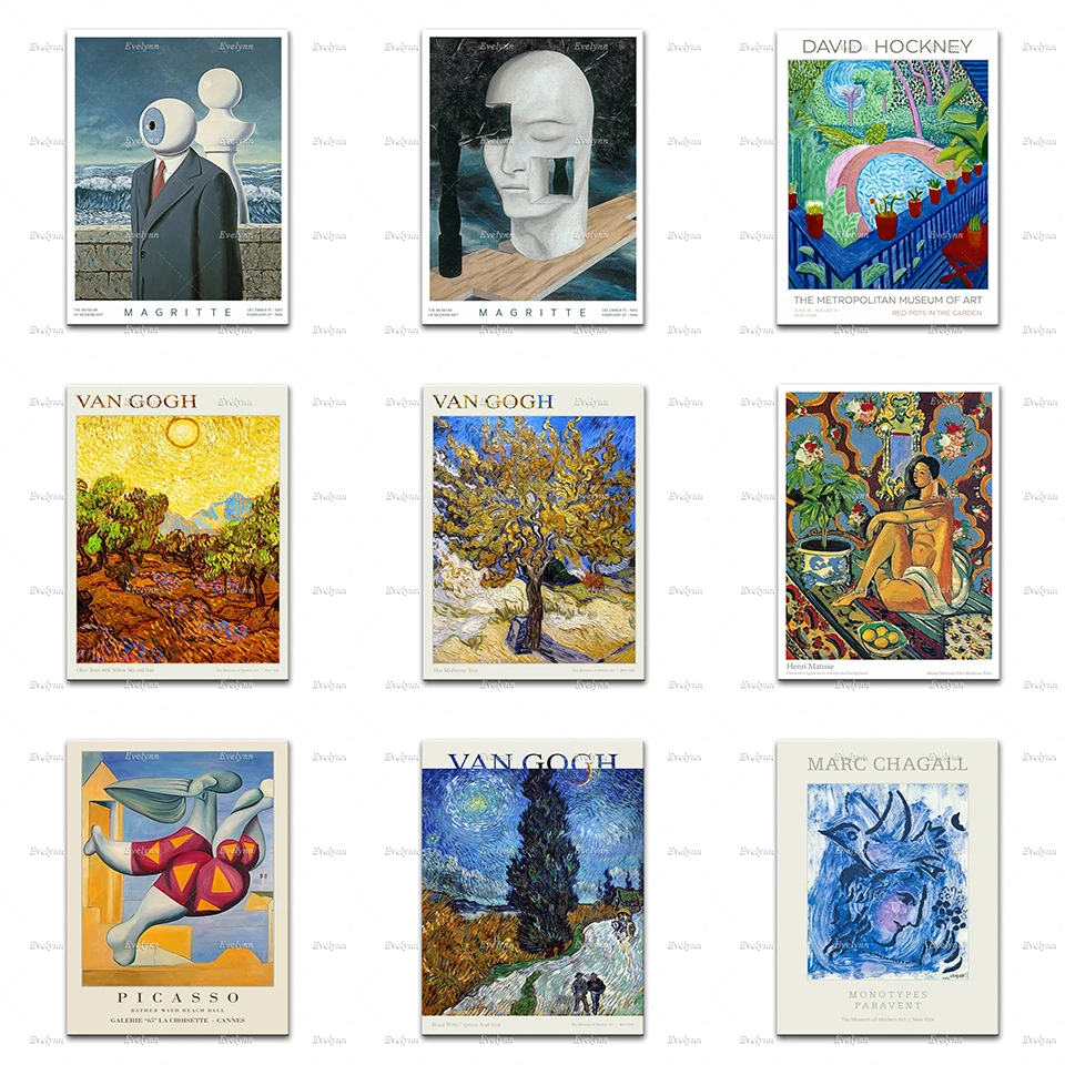 Rene Magritte выставочный плакат Матисса Boho Ван Гог Пикассо принты для домашнего декора стены искусства холст Гостиная украшения подарок