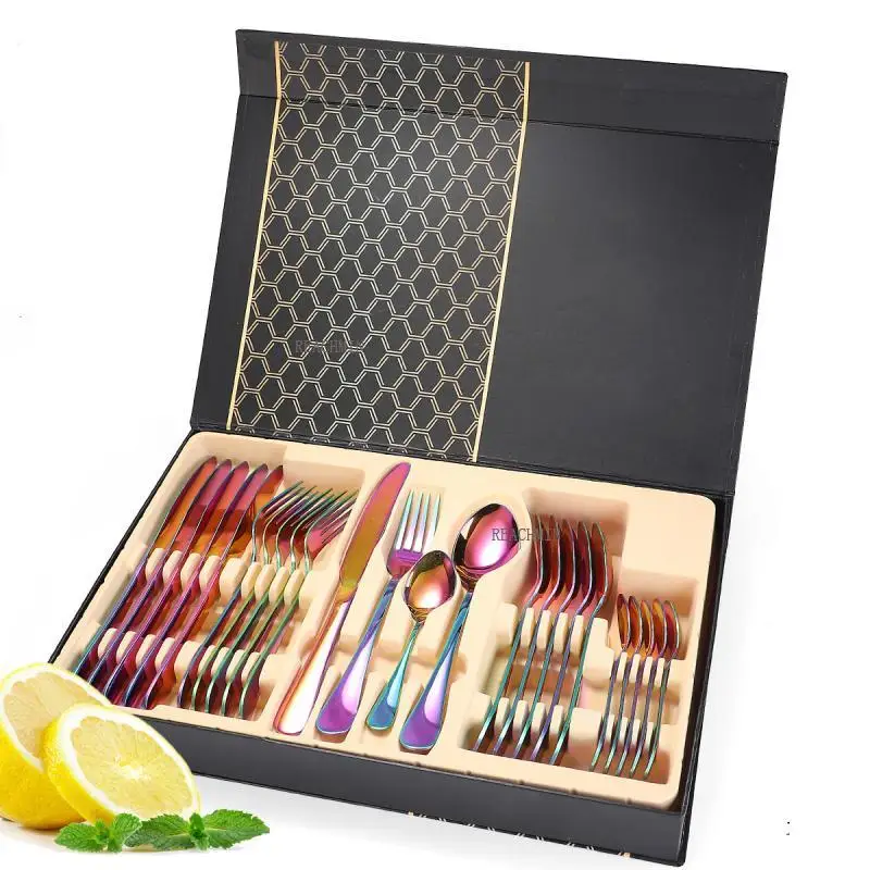 HEYI 24 шт. столовые приборы из нержавеющей стали 1010 Подарочная к...