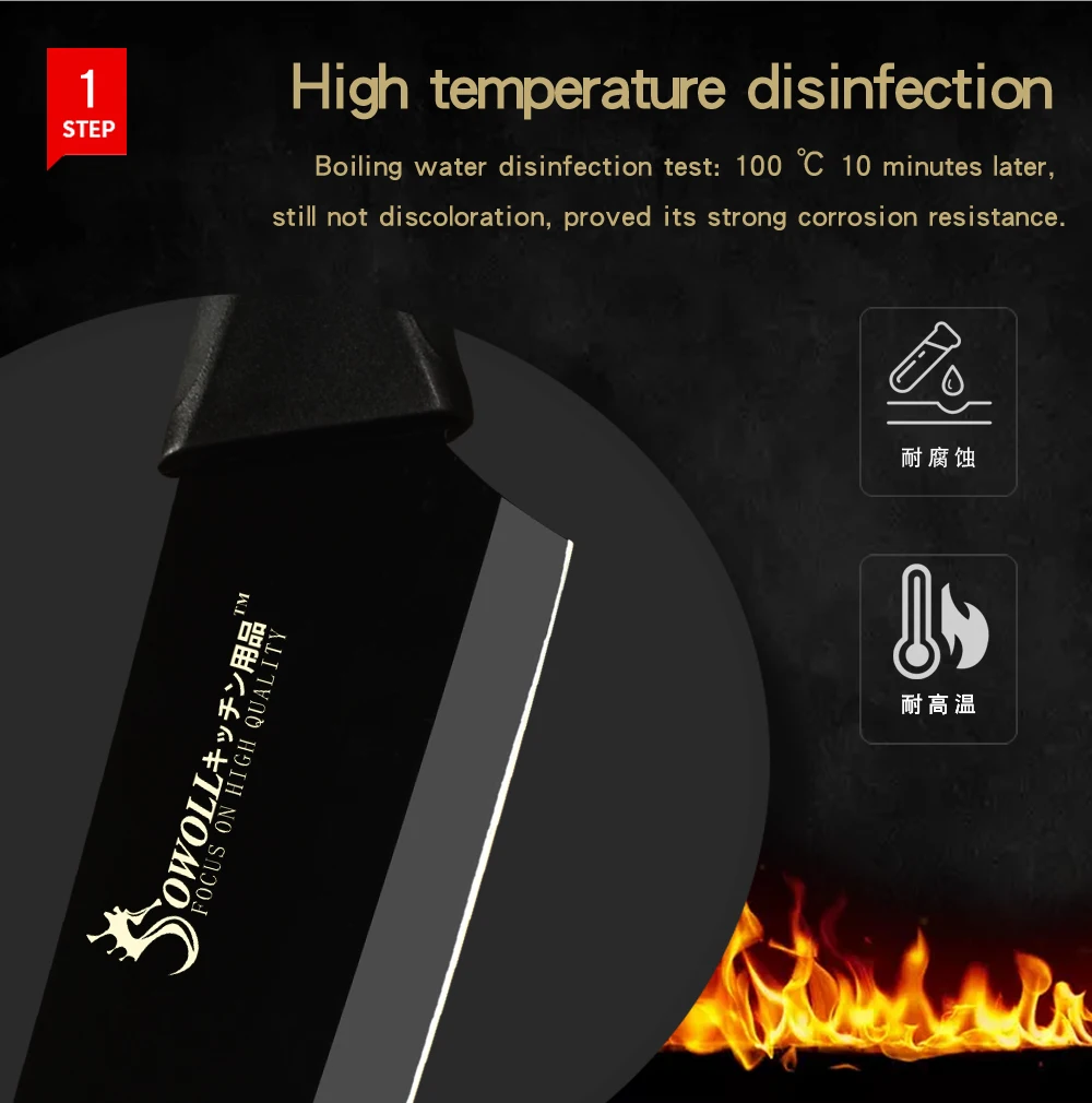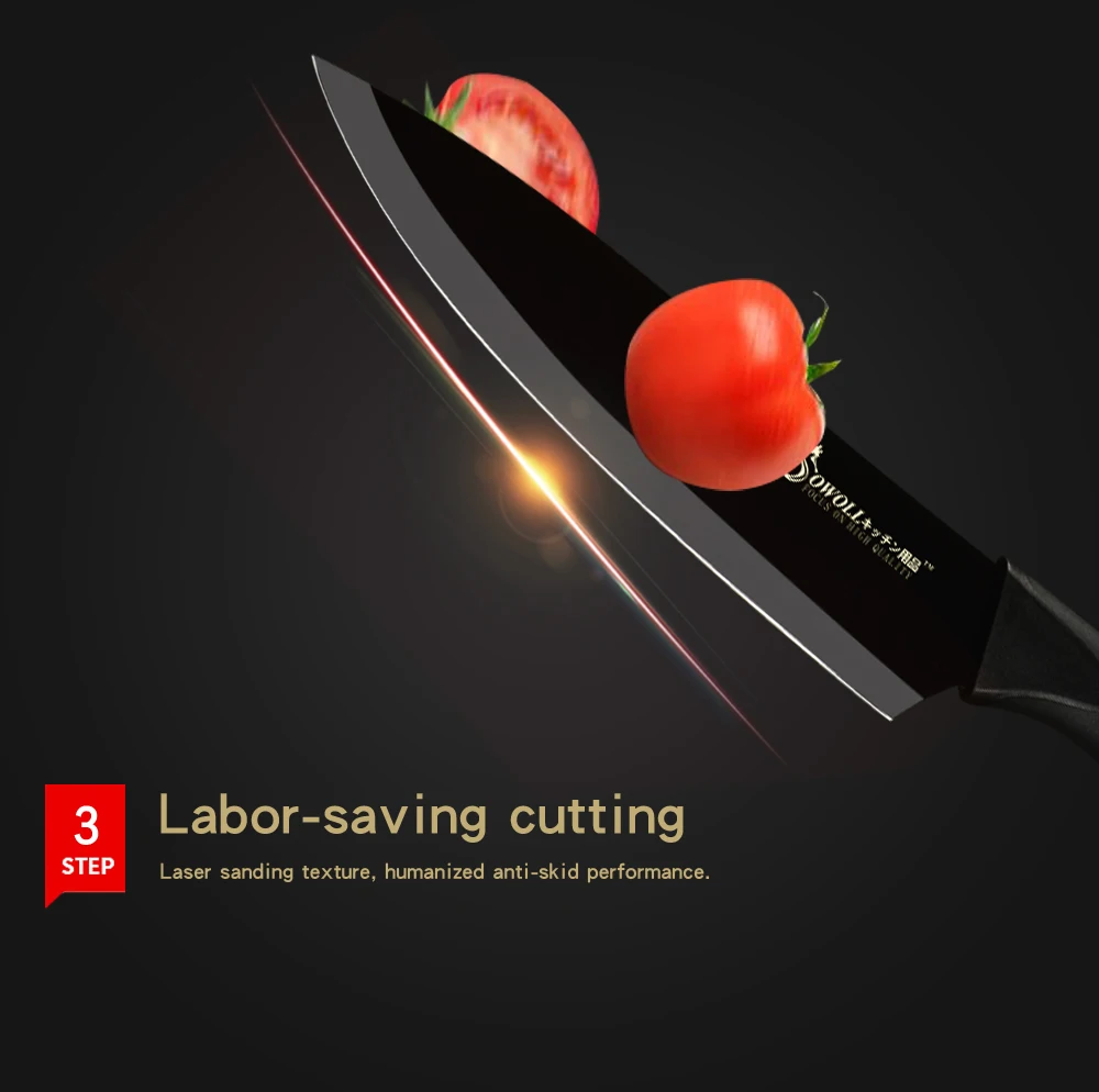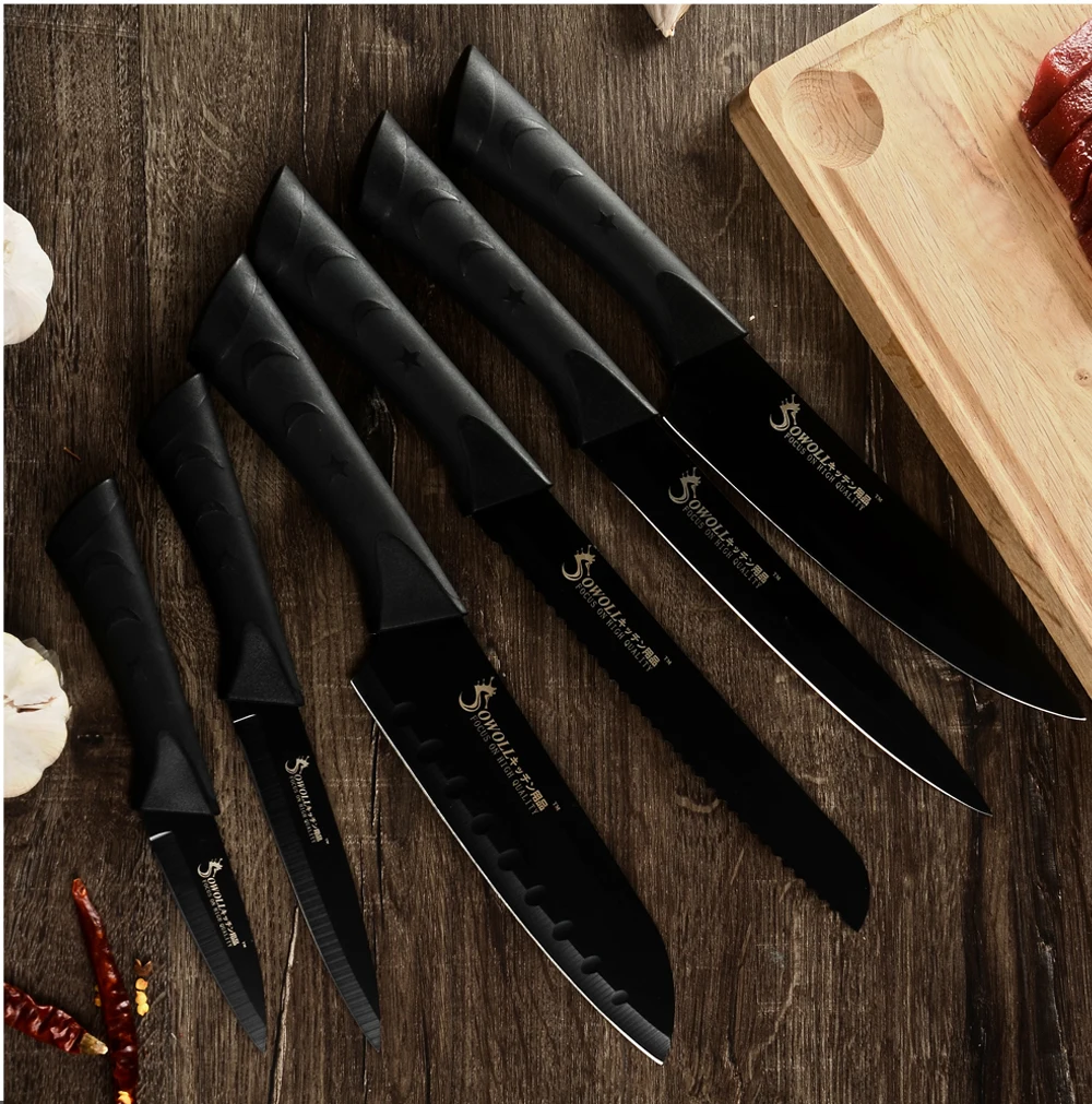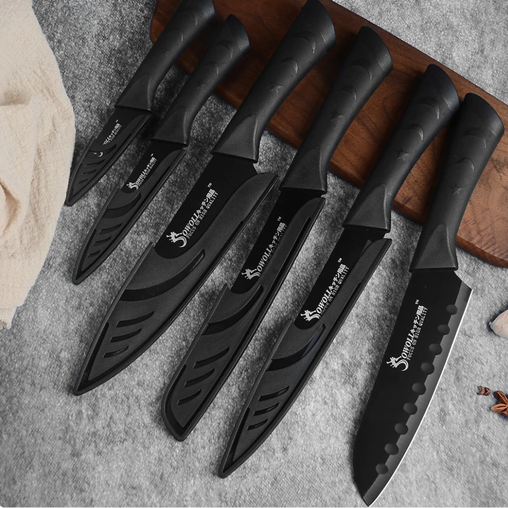 Набор кухонных ножей Sowoll, Черное лезвие, качественная нержавеюща...