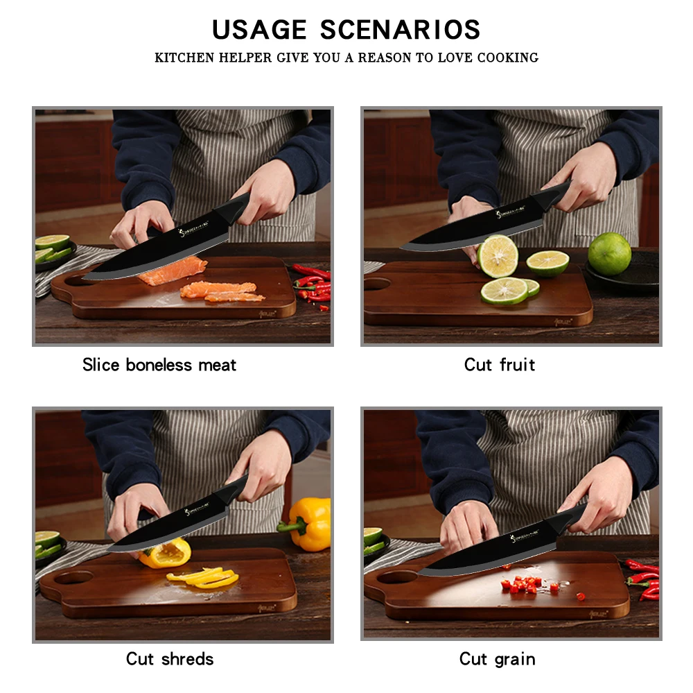 Нож шеф-повара из нержавеющей стали Sowoll, крутой черный кухонный инструмент для нарезки хлеба, сантоку, острые лезвия, столовые приборы