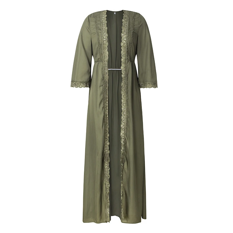 Пляжное платье-кардиган, Женская длинная открытая кружевная приталенная свободная Пижама с завязками на талии, одежда для сна, домашняя одежда на лето