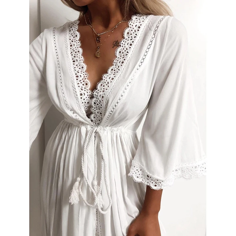 Женское длинное пляжное платье-кардиган, мягкое сексуальное кружевн...