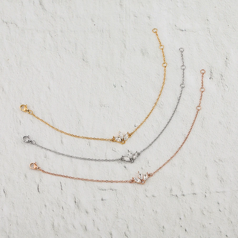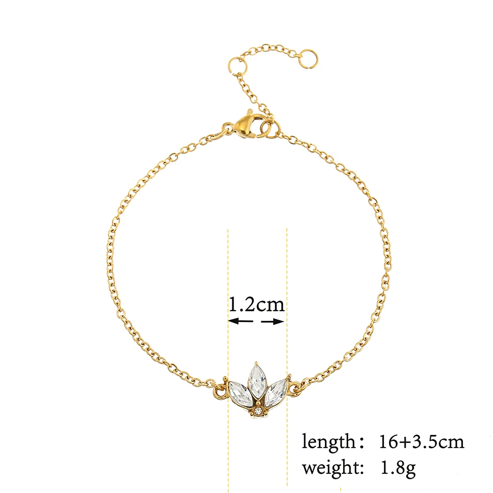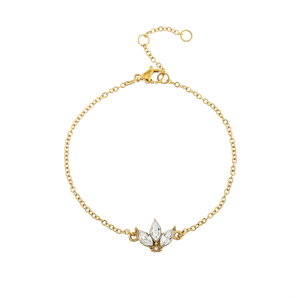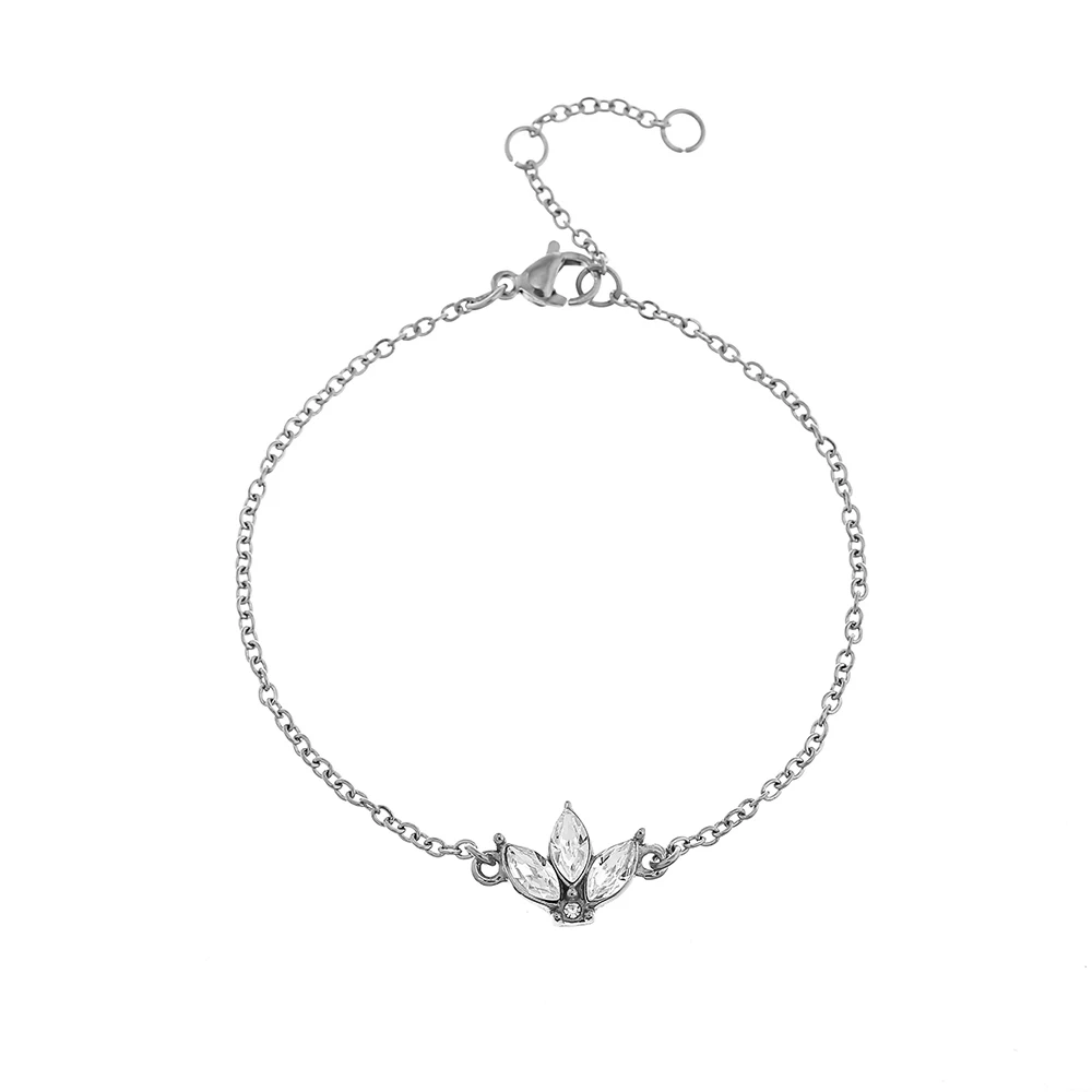 Нержавеющаясталь сверкающий камень браслет с цветком лотоса с украшениями в виде кристаллов и цветов звено цепи браслет может быть регулируем 3 Размеры в качестве подарка