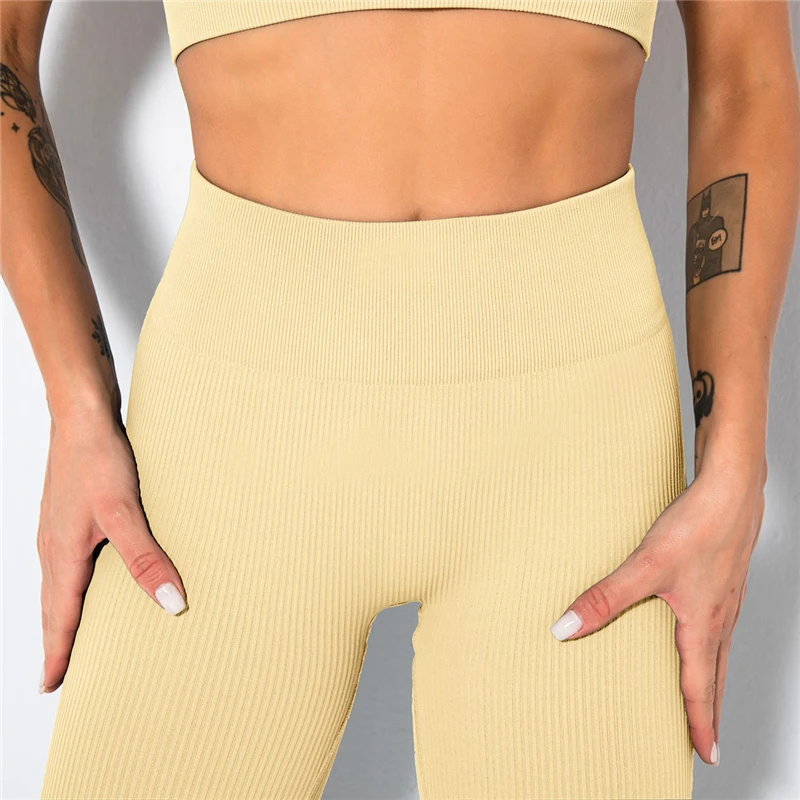 Бесшовный Женский комплект для йоги, тренировочная спортивная одежда, одежда для спортзала, укороченный топ для фитнеса, леггинсы с высокой талией, спортивные костюмы, 2 шт.