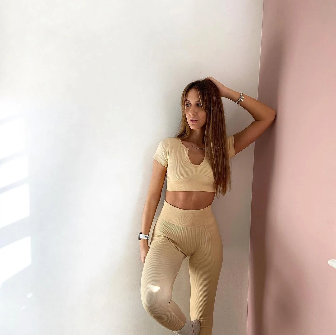Комплект для йоги в рубчик, шорты, костюм для фитнеса, женская спор...