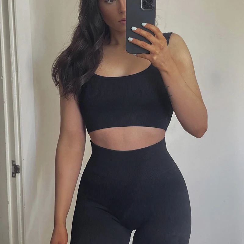 Комплект женский бесшовный из топа и шорт, с высокой талией