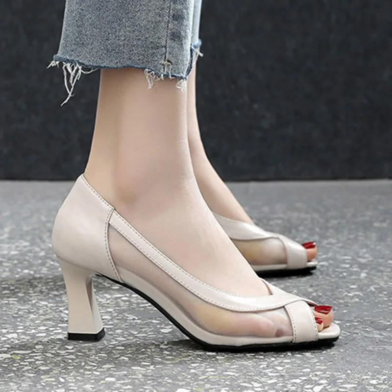 Женские босоножки с острым носком, сетчатые туфли с ремешком на щик...