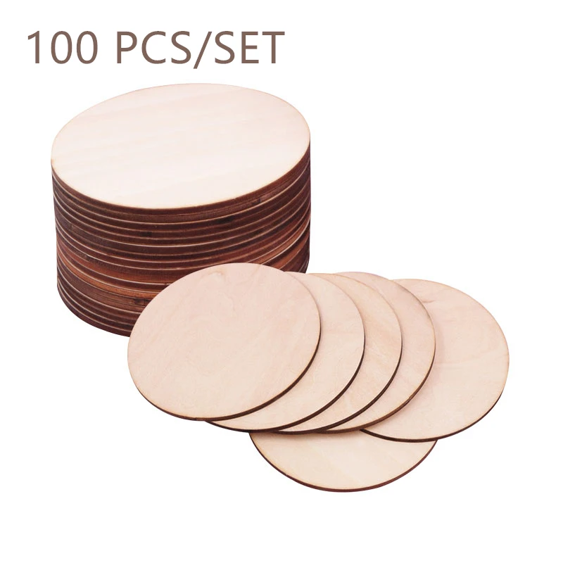 100 шт натуральные круглые деревянные ломтики (по вашему выбору)