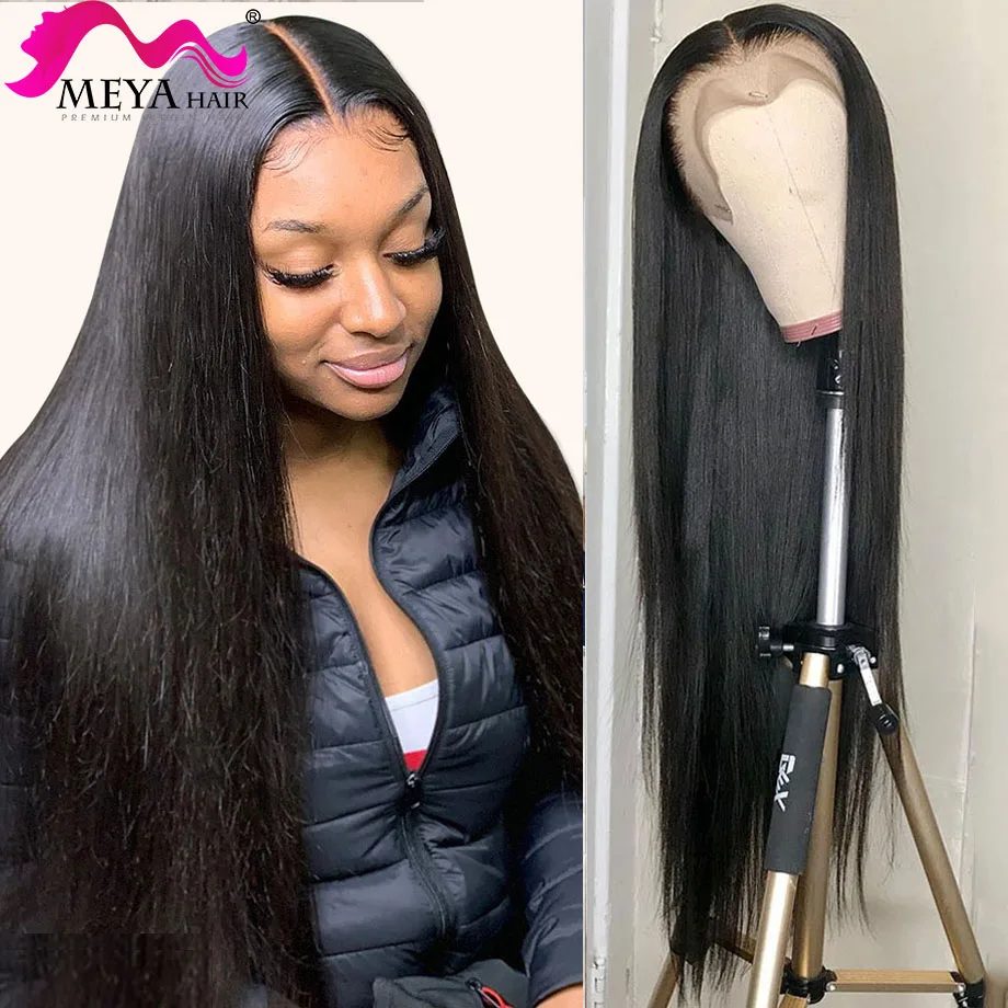 Meya 28 30 32 дюйма 13x4 Прямой фронтальный парик из бразильских человеческих волос 4x4 5x5 прозрачные фронтальные парики на сетке для женщин