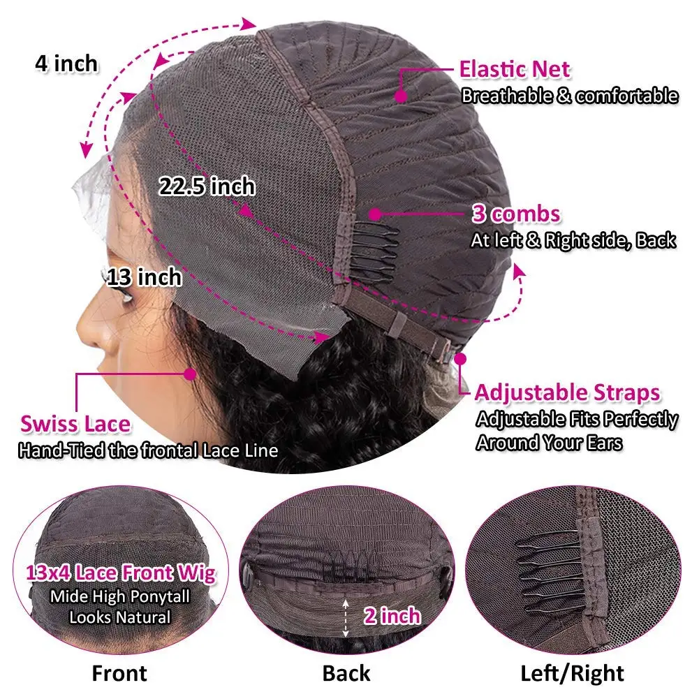 Парики из человеческих волос с глубокой волной, на сетке спереди, 1...