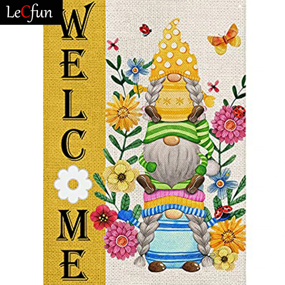 Набор для алмазной 5D живописи LeCfun, Набор для творчества с полным заполнением, круглыеквадратные блестящие стразы, вышивка Добро пожаловать, гномы, домашний декор