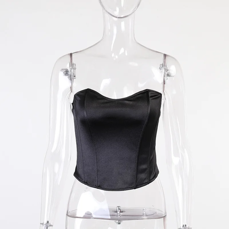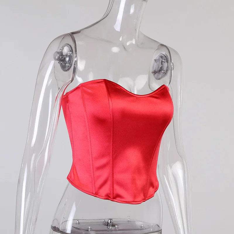 Женский атласный корсет с открытыми плечами, без бретелек, без рукавов